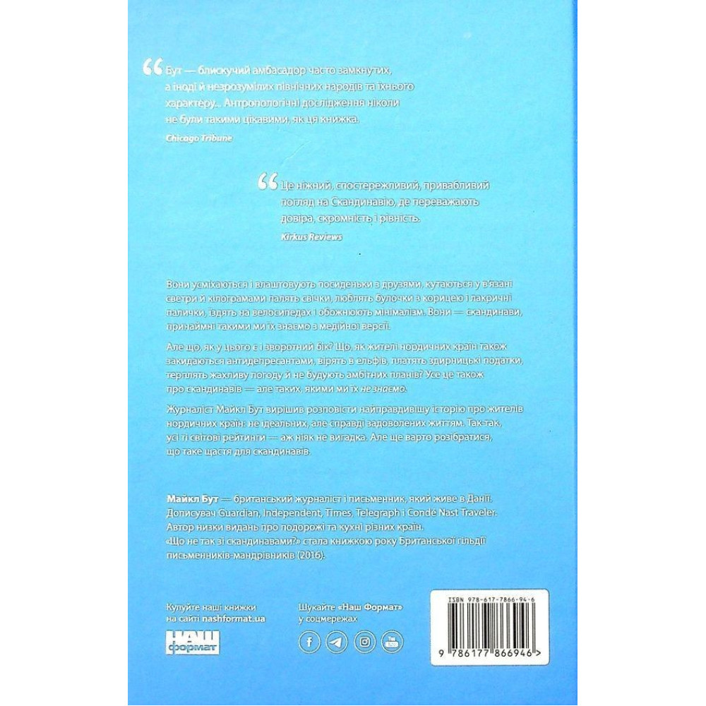 Книга Майкла Бута «Що не так зі скандинавами? Правда і міфи про найщасливіших людей» пропонує поглянути чистим оком на скандинавів і їх життя та наново переосмислити власне розумння їхнього менталітету.