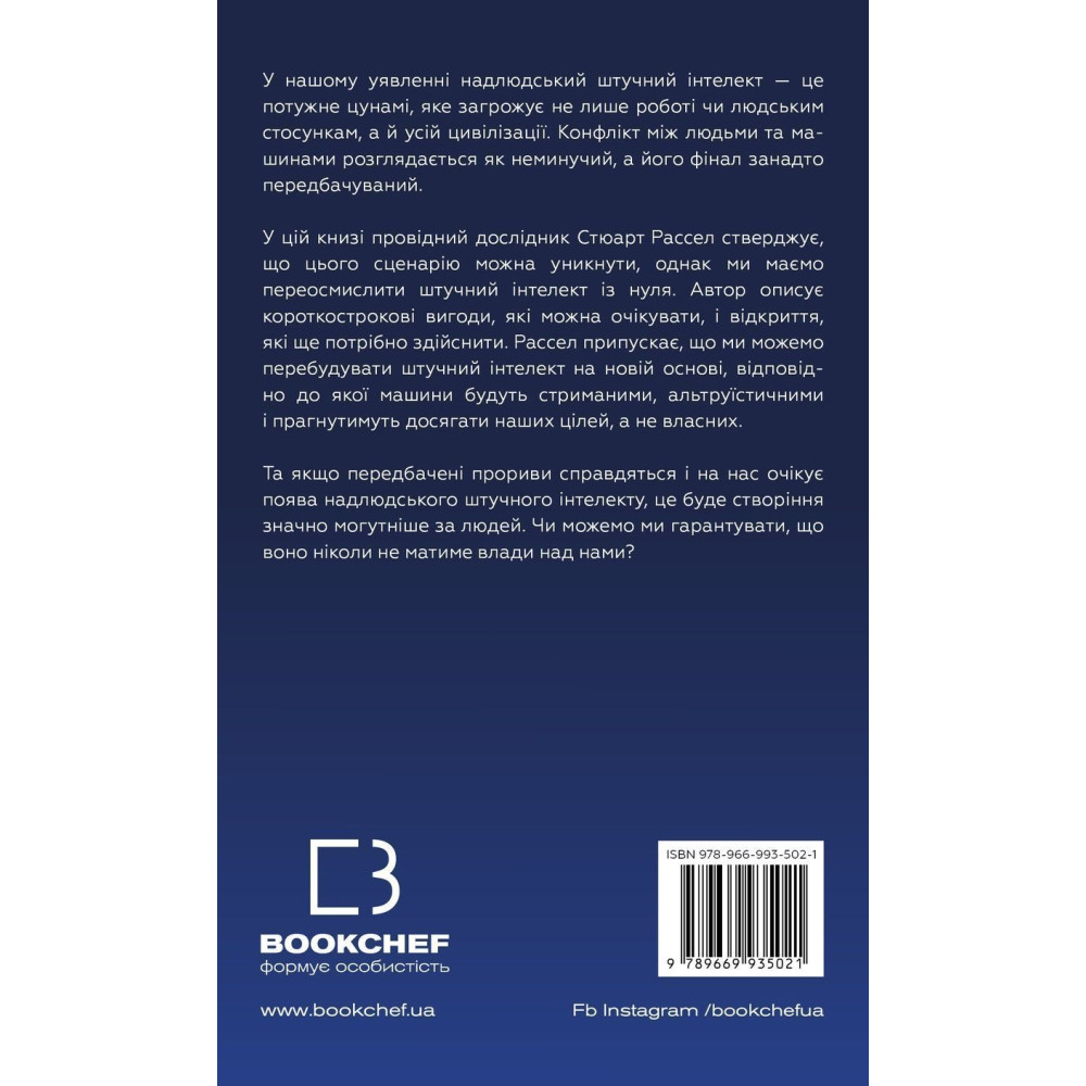 У цій книзі провідний дослідник С. Рассел стверджує, що цього сценарію можна уникнути, однак ми маємо переосмислити штучний інтелект. Автор описує короткострокові вигоди, які можна очікувати, і відкриття, які ще потрібно здійснити. Рассел припускає, що ми можемо перебудувати штучний інтелект на новій основі, відповідно до якої машини будуть стриманими, альтруїстичними й прагнутимуть досягати наших цілей, а не власних.