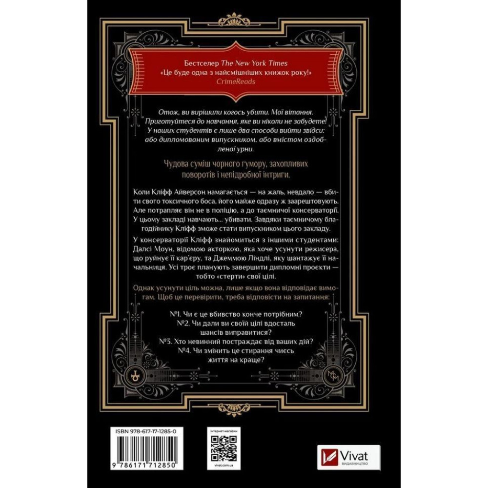 Коли Кліфф Айверсон намагається — на жаль, невдало — вбити свого токсичного боса, його майже одразу ж заарештовують. Але потрапляє він не в поліцію, а до таємничої консерваторії. У цьому закладі навчають… убивати. Завдяки таємничому благодійнику Кліфф зможе стати випускником цього закладу.