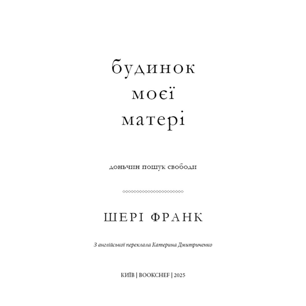 «Будинок моєї матері. Доньчин пошук свободи» — щира й болісна мемуарна книга від Шері Франк, у якій авторка розповідає про своє дитинство в середині родини, що ззовні виглядала ідеально, але всередині приховувала глибокі рани.
