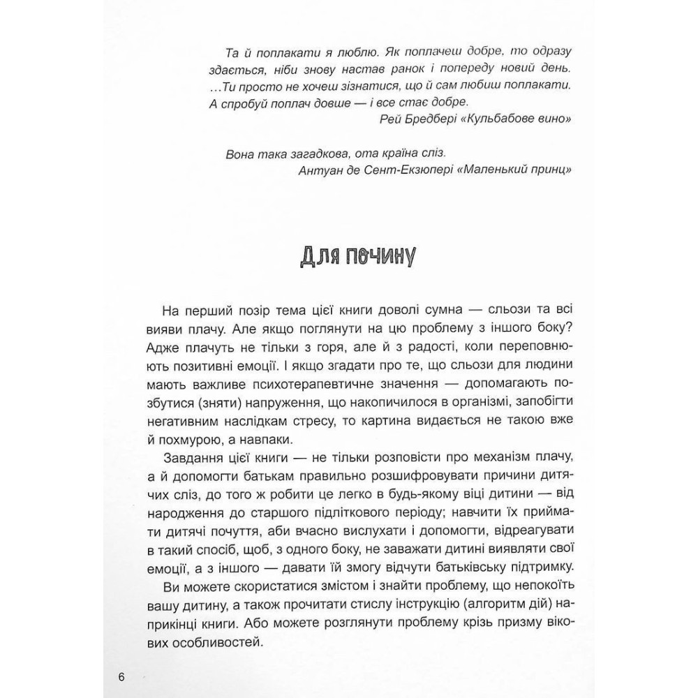 Але ця книга не лише про сльози. Адже плач завжди запускається тоді, коли людина відчуває якісь емоції.