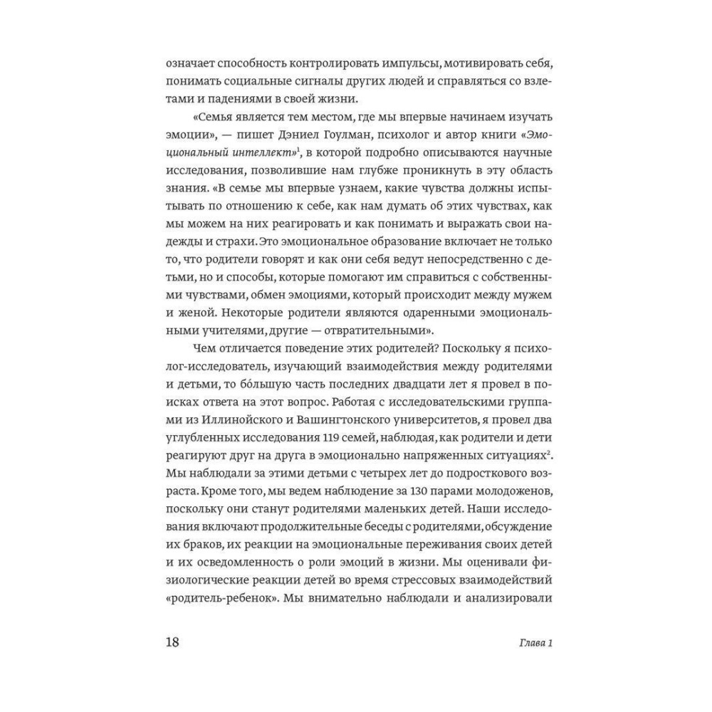Практикуючий бувалий експерт з галузі сімейної психології Джон Готтман у книзі «Эмоциональный интеллект ребенка. Практическое руководство для родителей» демонструє наочно, що діти, у яких емоційний інтелект високий, більш упевнені в собі, у них значно міцніше здоров'я, вони швидше й легше досягають позитивних початків у навчанні, а також упевненіше спілкуються та взаємодіють з іншими людьми.
