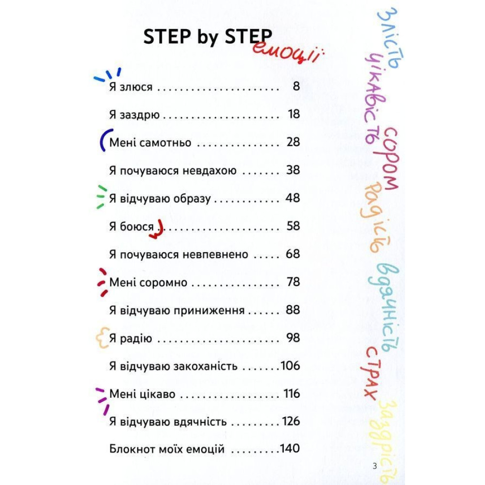 Книга Світлани Єфременкової «Емоції без фейків. Путівник підлітка «STEP BY STEP» допоможе підліткам орієнтуватися у широкому спектрі людських емоцій, навчитися керувати ними, а також розв’язувати ситуації, спричинені певними емоціями та почуттями. У цікавій формі життєвих історій підлітків розглянуто найяскравіші емоції та почуття (злість, сором, страх, заздрість і т. ін.), які читач може порівняти з власними, а головне — опанувати нескладні техніки роботи з емоціями.