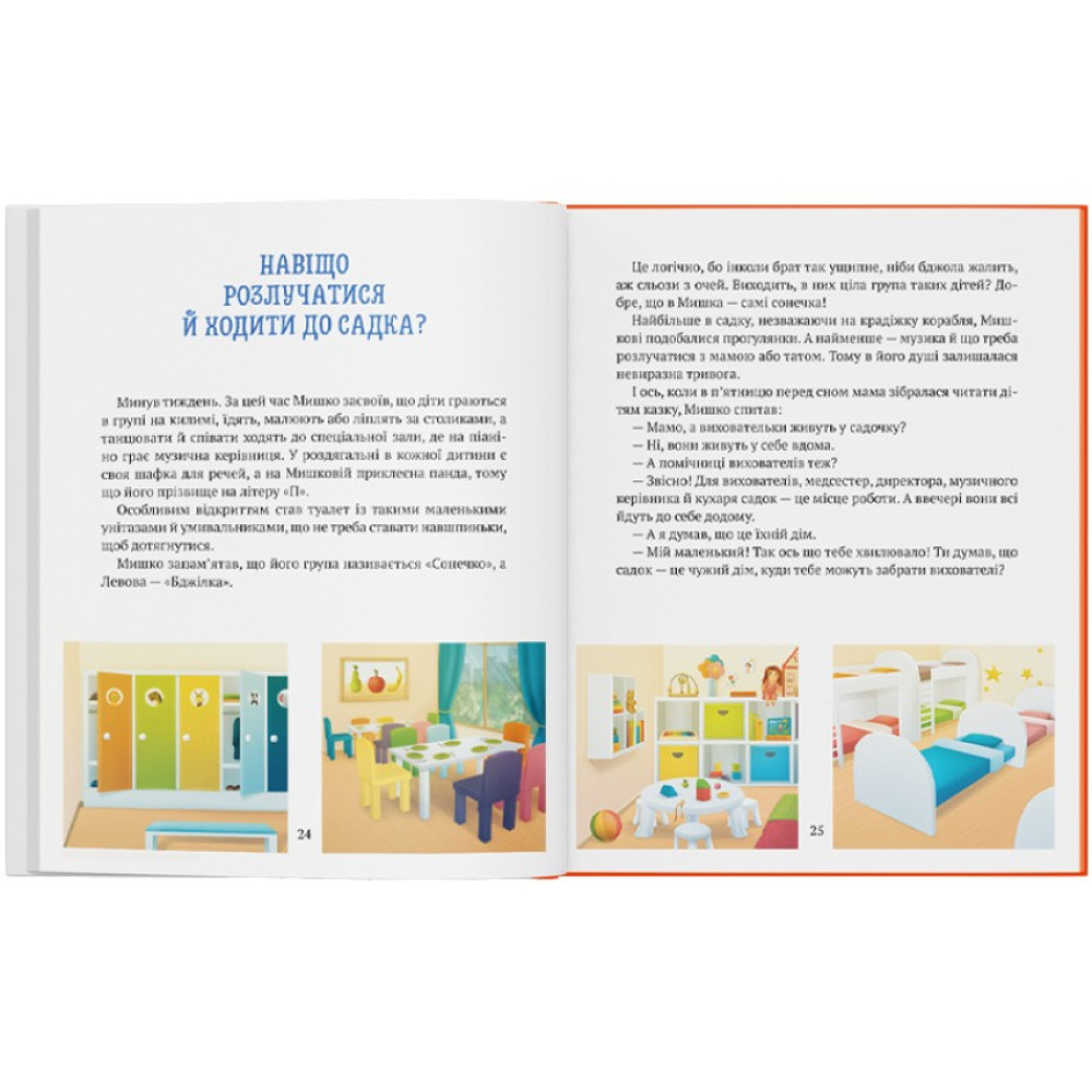 Звісно, адаптуватися до нового маленькій людині не так-то просто. На цьому шляху постає чимало перешкод. Як же перетворити ці труднощі на захопливі пригоди, сум розлуки — на радість спілкування, страх на довіру, а сором'язливість на тріумф? Про це ви дізнаєтеся з історії хлопчика Мишка.