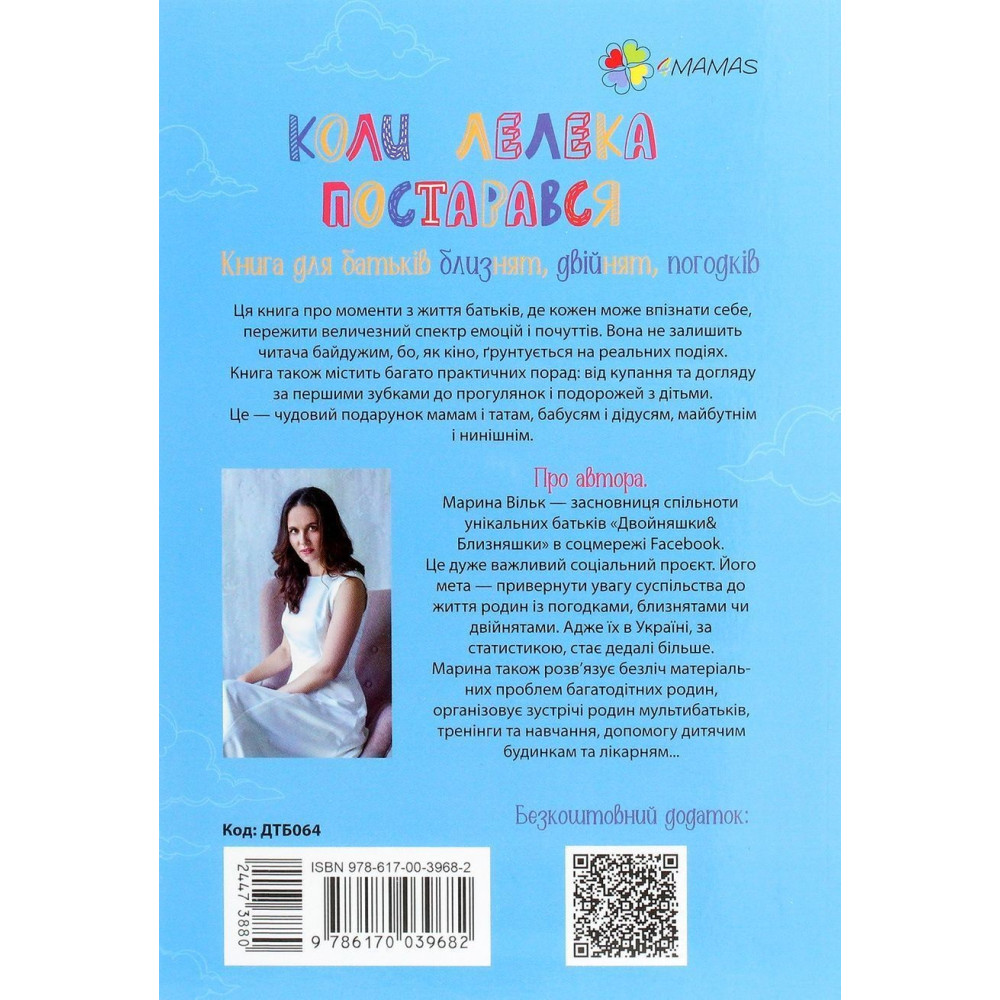 Книжка за авторством Марини Вільк «Коли лелека постарався. Книга для батьків близнят, двійнят, погодків» не залишить байдужим нікого з батьків, адже у ній зібрано унікальний досвід і знання реальних батьків двійнят, трійнят (щонайменше двох дітей) з різних країн світу, об’єднаних у Фейсбук-групу «Двійнята & Близнята». Мами й тата діляться знаннями і лайфхаками, що допомагають їм жити повноцінно й щасливо у сім’ї з декількома маленькими дітьми.