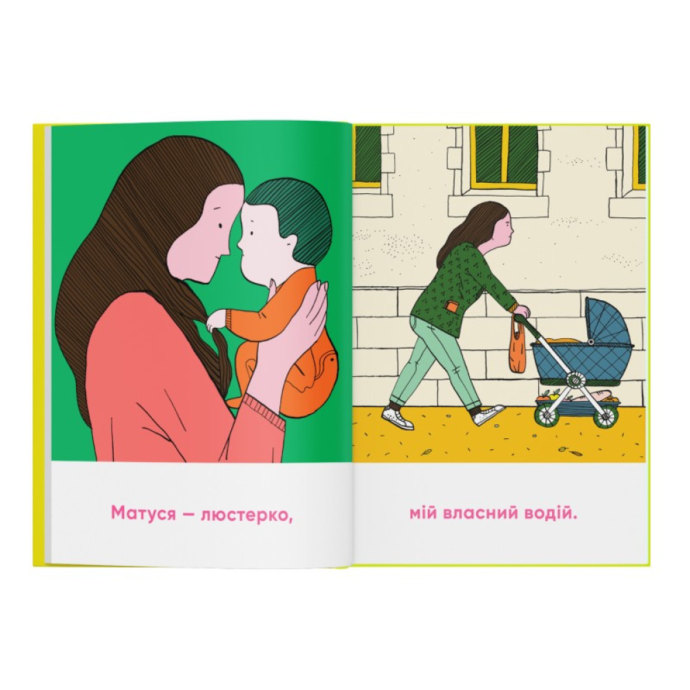 Яскрава і стильна книжка «Матуся — домівка» від Аврори Петі розкриває дитячий погляд на світ від народження до перших кроків. Малюк бачить матусю у всьому: вона — його дім, його колискова, його дорога у світ.