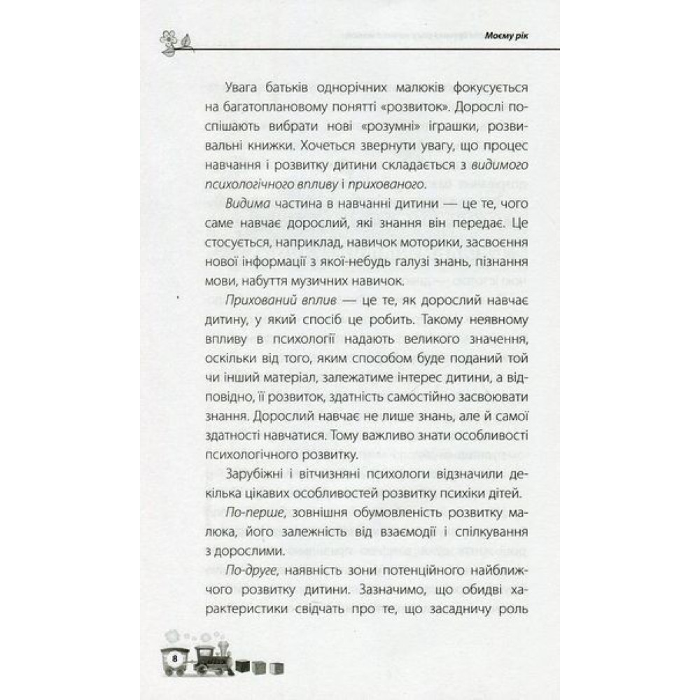 У цій книзі під назвою «Мені 1 рік», яку написала Ольга Бабічева, дбайливі батьки знайдуть інформацію про особливості розвитку дитини у віці від року до двох. Відповіді на актуальні запитання дадуть можливість творчо поставитись до виховання. Практичні вправи і цікаві завдання, які дорослі зможуть виконувати з малюком, зроблять цей рік розвитку корисним і незабутнім.