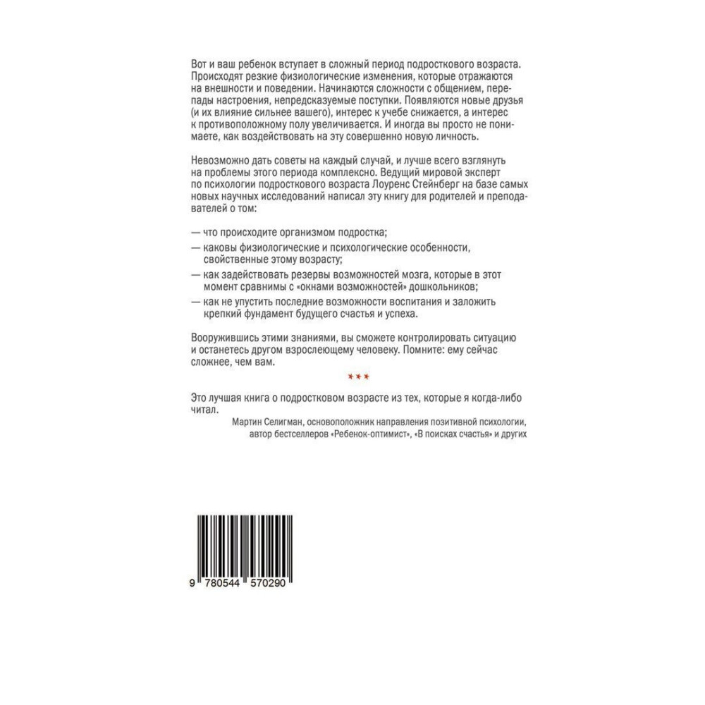 Лоуренс Стейнберг — провідний світовий експерт з підліткового віку, професор психології, автор понад 400 статей та есеїв про підлітковий розвиток і чималої кількості книжок (включно з основним підручником для коледжів на тему підліткового віку), а також колишній президент департаменту психології розвитку в Американській психологічній асоціації. Доктор Стейнберг виступав експертом на популярних телевізійних шоу, включно з CBS Morning News, Good Morning America і шоу Опри Вінфрі. Крім того, він консультував провідні ЗМІ, зокрема New York Times, і писав для Wall Street Journal, Washington Post, USA Today і Psychology Today.