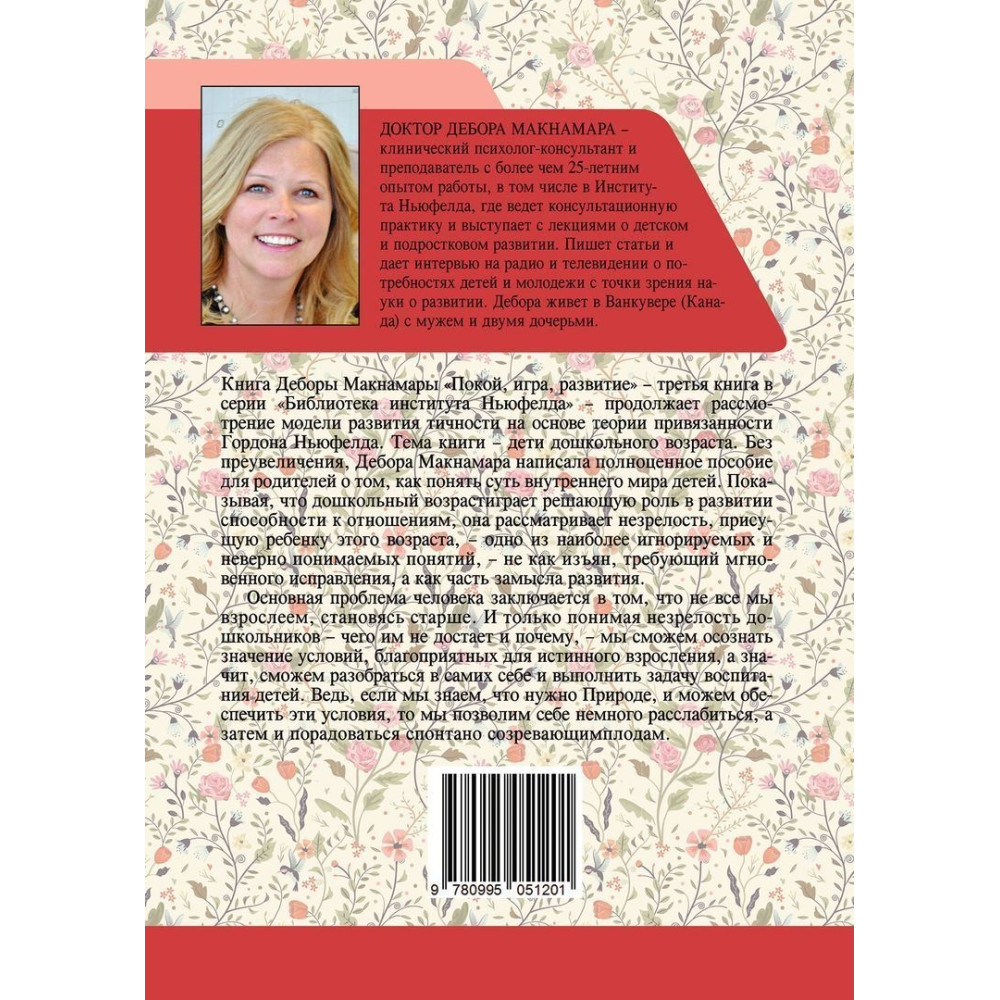 Книжка Дебори Макнамари «Покой, игра, развитие. Как взрослые растят маленьких детей, а маленькие дети растят взрослых» — третя книжка в серії «Бібліотека інституту Ньюфелда», продовжує розгляд моделі розвитку особистості на основі теорії прив'язаності Гордона Ньюфелда.