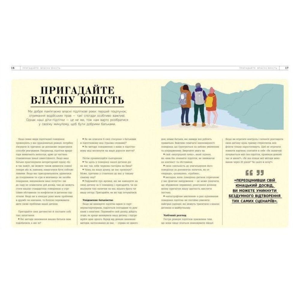 Ця книга також розділена на три вікових проміжки (13-14, 15-16, 17-18 років). І в ній тільки найпоширеніші та реальні сценарії кризових ситуацій, але вже для старших дітей, а отже більш складних для самостійного вирішення без втручання спеціаліста. Ситуації представлені з точки зору підлітка, з точки зору батьків, а потім викладено інструкцію з негайного реагування та реагування у майбутньому.