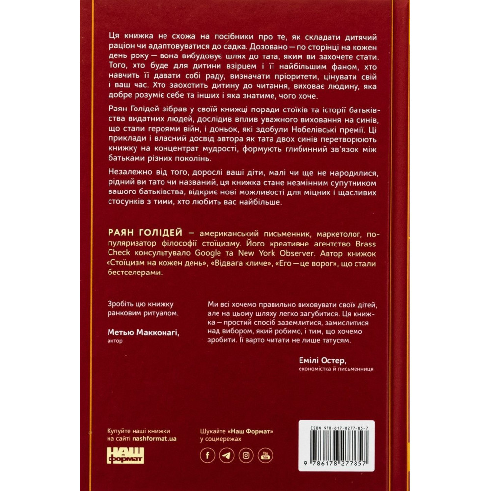 Спираючись на свій особистий досвід як батька двох дітей, а також аналізуючи життєві історії успішних історичних постатей, Раян Голідей пропонує вам повноцінний концентрат мудрощів, над яким має задуматися будь-який батько.