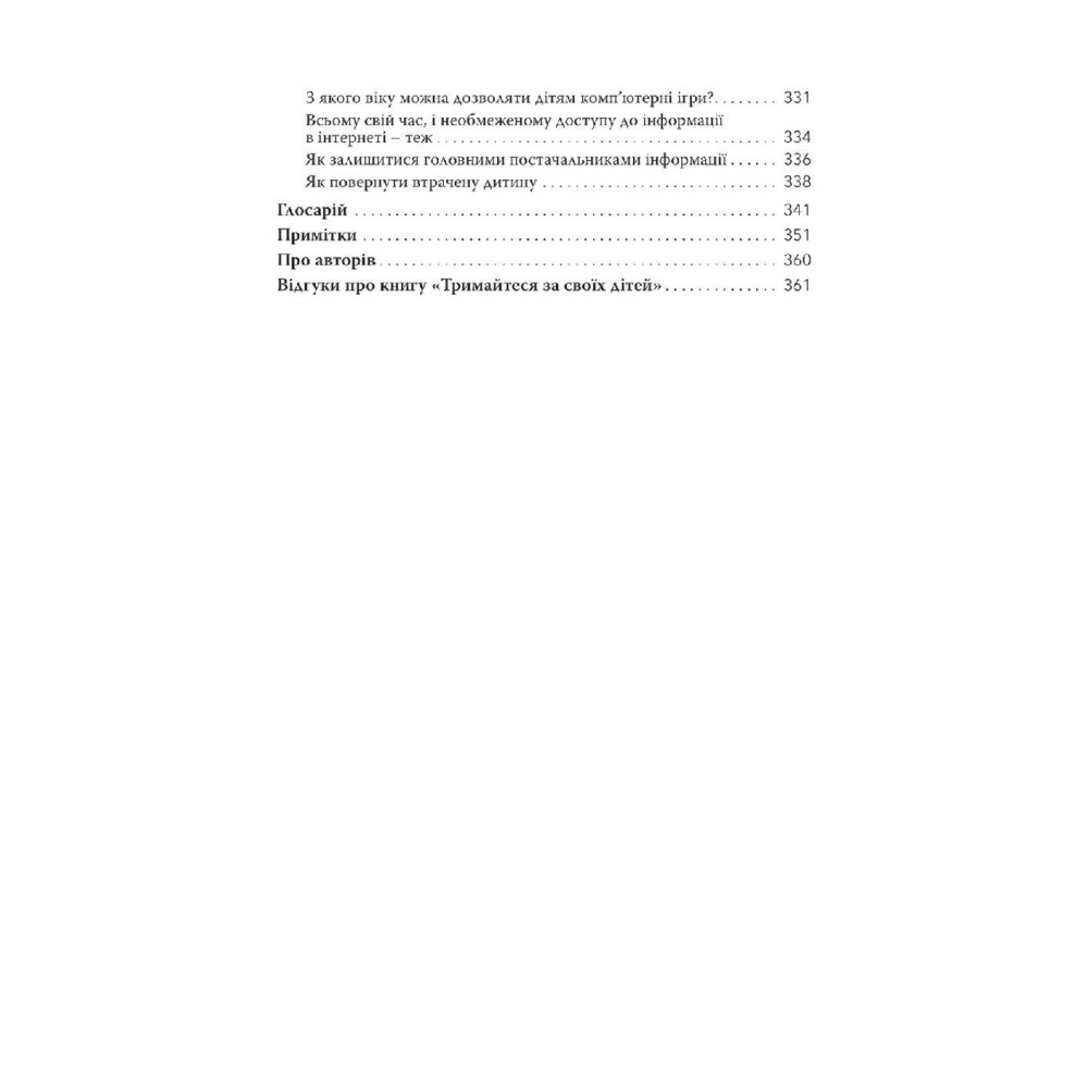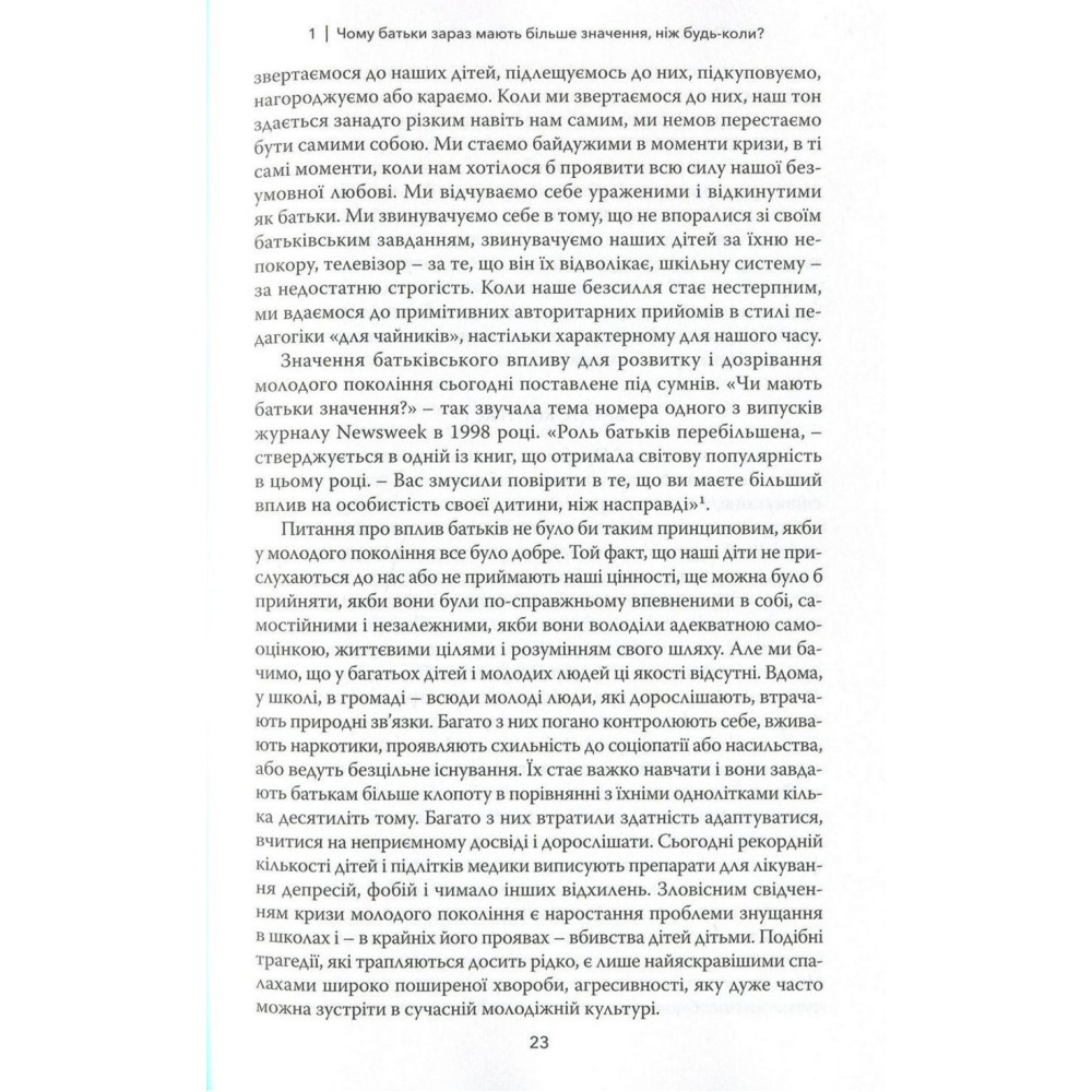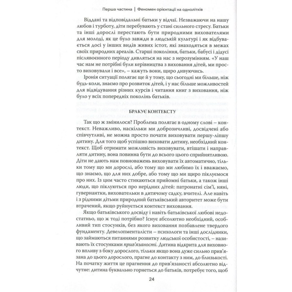 Пропонуючи ефективні стратегії збереження та відновлення стосунків дитини з батьками, ця книга пропонує нові природні альтернативи сучасним надуманим методам контролю поведінки. Зміст книги відгукнеться батькам дітей будь-якого віку, починаючи від немовлят і закінчуючи дорослими дітьми. Читачі часто зауважують, скільки труднощів і плутанини вони могли б уникнути, якби цей матеріал був їм доступний із самого початку.