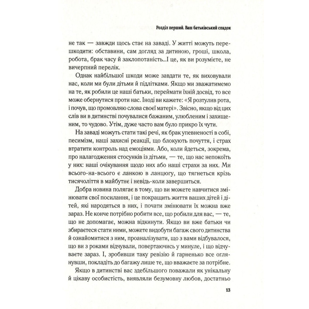 Книга починається із заклику проаналізувати стосунки зі своїми батьками. Мало хто мав ідеальне дитинство, і є певні травми, які всі ми боїмося передати дітям. Авторка допомагає пропрацювати цей аспект, перш ніж переходити до навичок здорового батьківства.