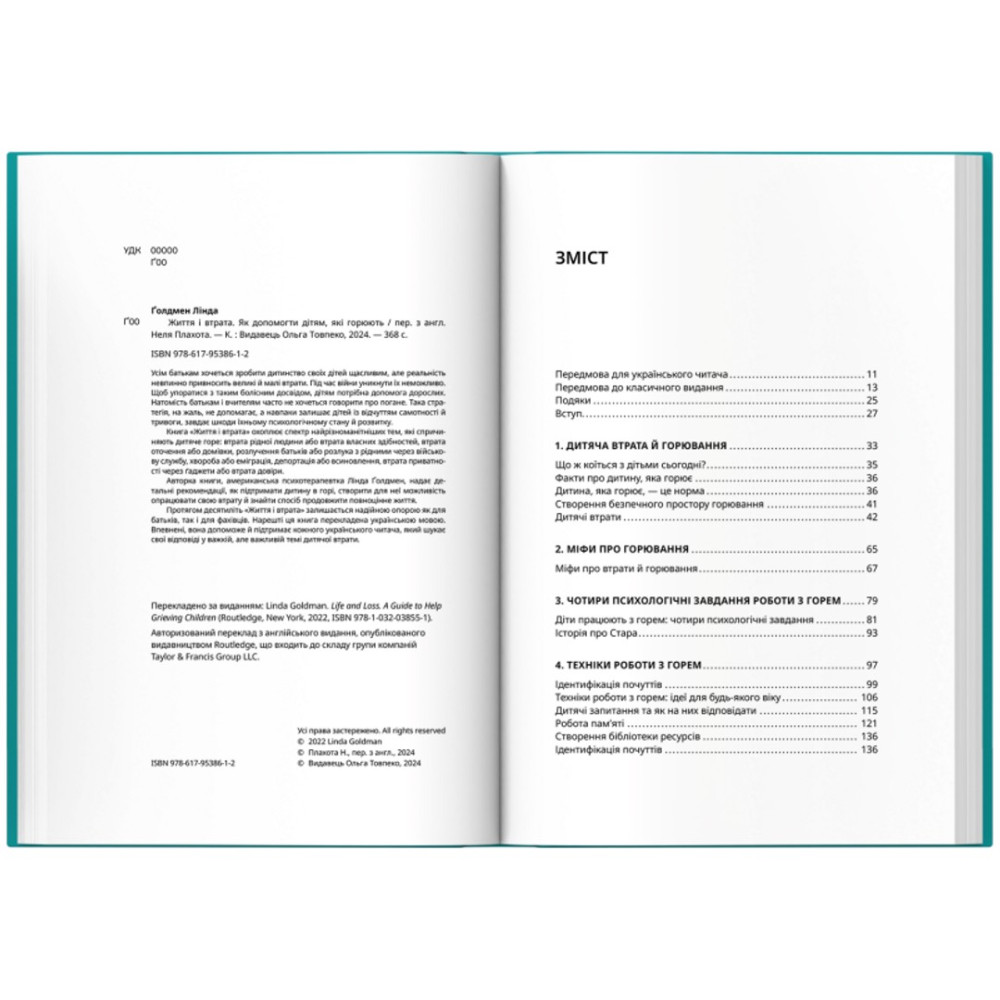 Книжка Лінди Ґолдмен «Життя і втрата: Як допомогти дітям, які горюють» є грунтовним посібником, який надасть дорослим і розуміння, і словник, який підкаже, як говорити з дітьми про горе. Вона пропонує широкий спектр варіантів і технік, як можна підтримати дитину, а також велику кількість історій зцілення, які підкажуть дорослим і дітям, як рухатися далі крізь горе.