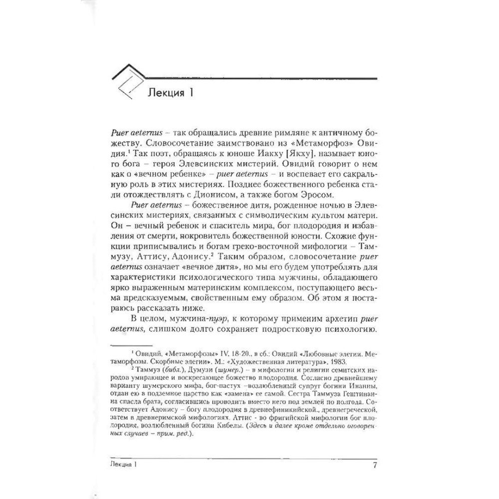 Марія-Луїза фон Франц, визнаний авторитет у галузі юнґіанської психології, досліджує у книзі «Вечный юноша. Puer Aeternus» тип чоловіка, пов'язаного материнським комплексом. «Вічний юнак» — життєрадісний і енергійний, який завжди залишається дитиною в душі, але не бажає брати на себе відповідальність і зобов'язання, — став об'єктом пильної уваги і всебічного дослідження автора.