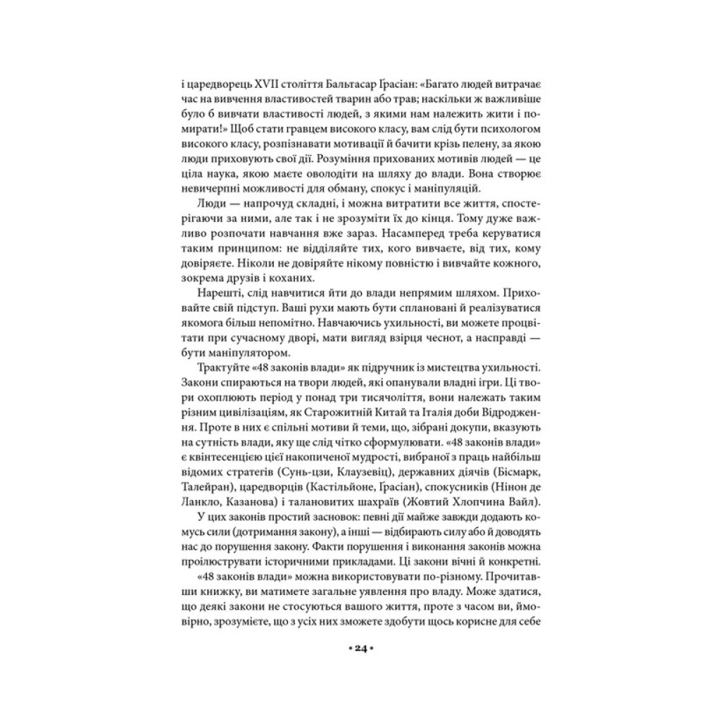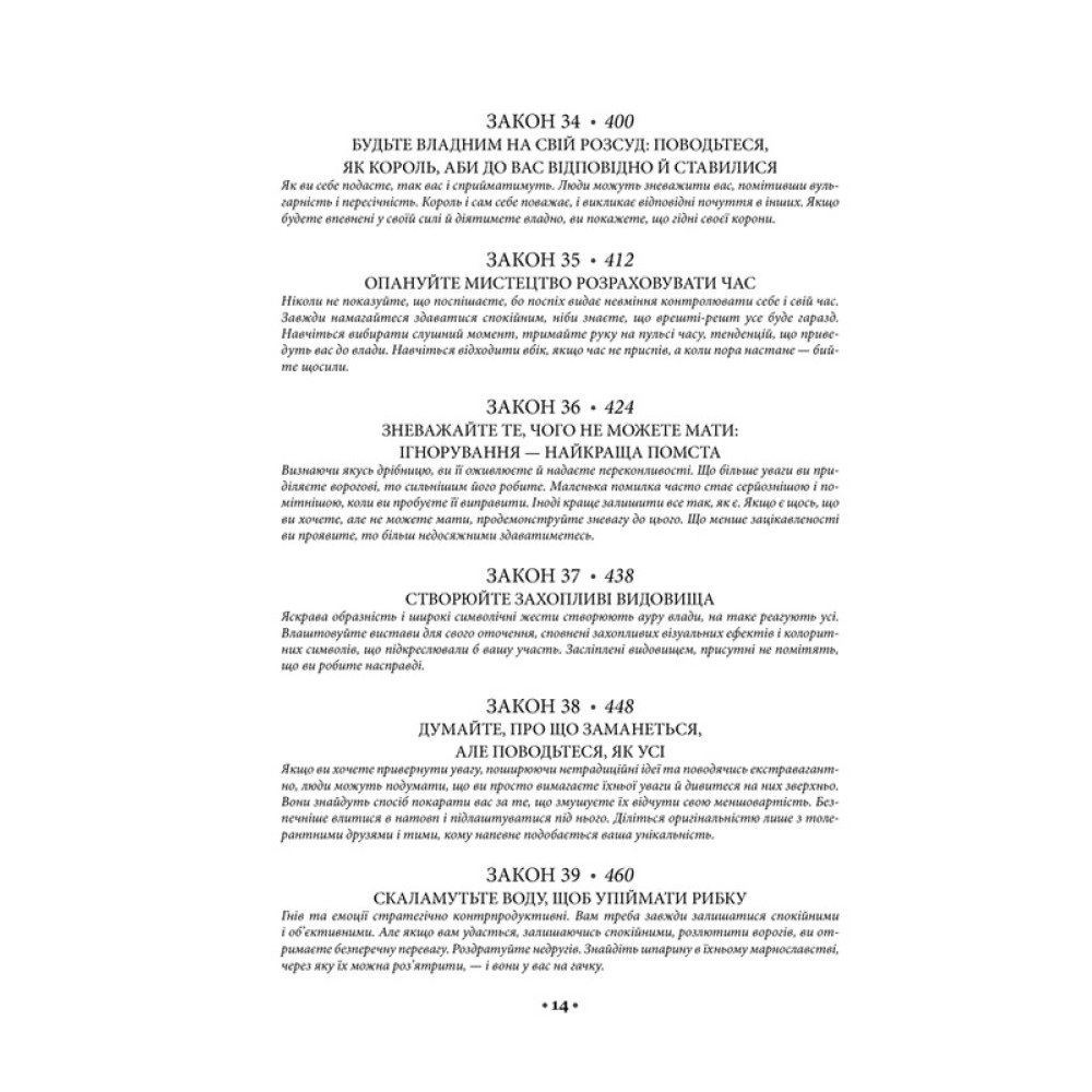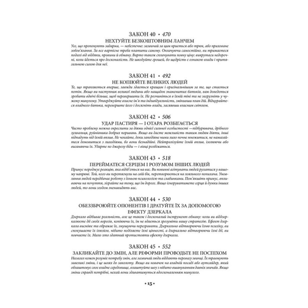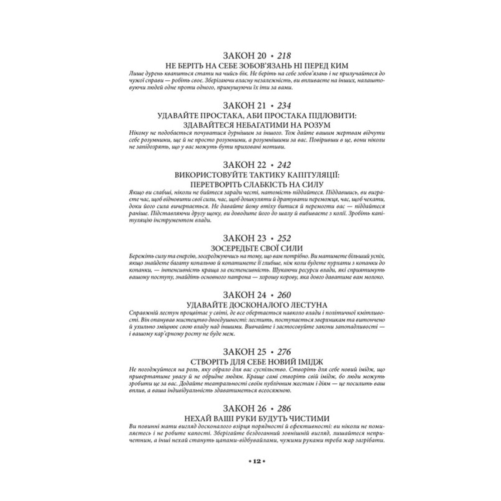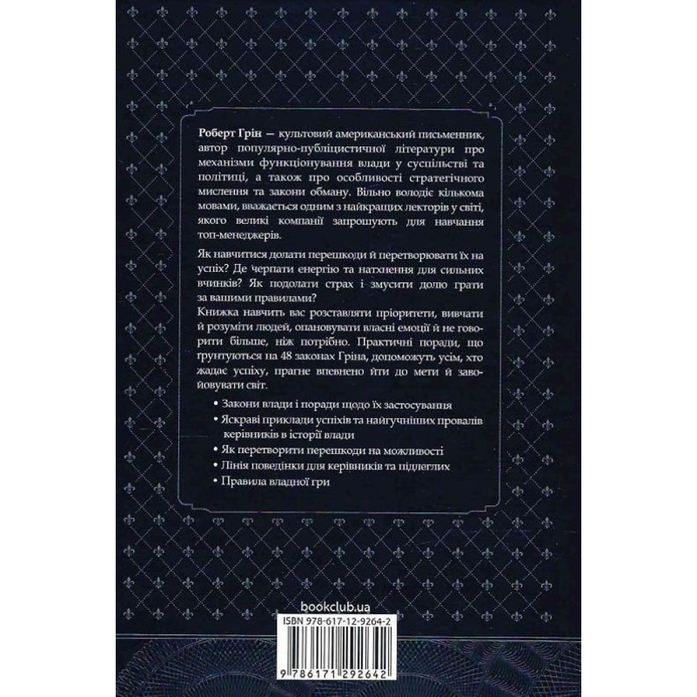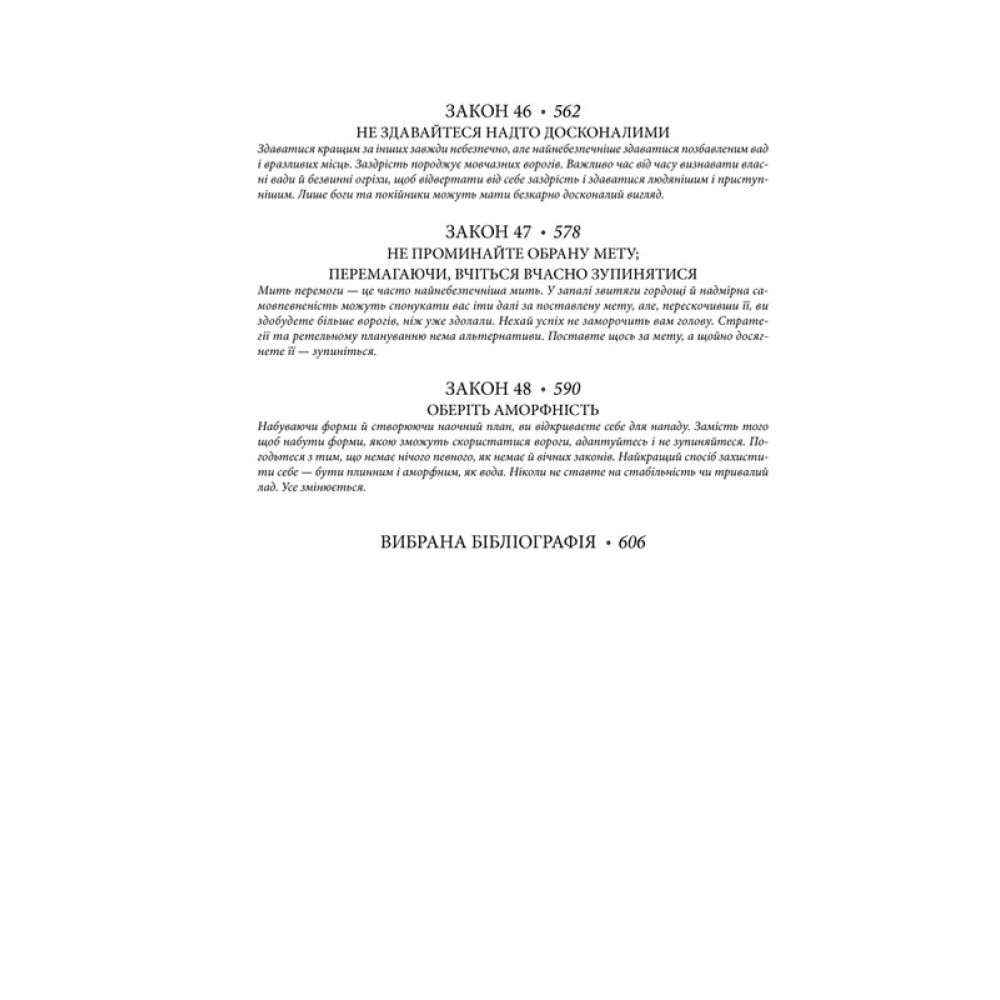 Книжка «48 законів влади» навчить вас розставляти пріоритети, вивчати й розуміти людей, опановувати власні емоції й не говорити більше, ніж потрібно. Практичні поради, що ґрунтуються на 48 законах Гріна, допоможуть усім, хто жадає успіху, прагне впевнено йти до мети й завойовувати світ.