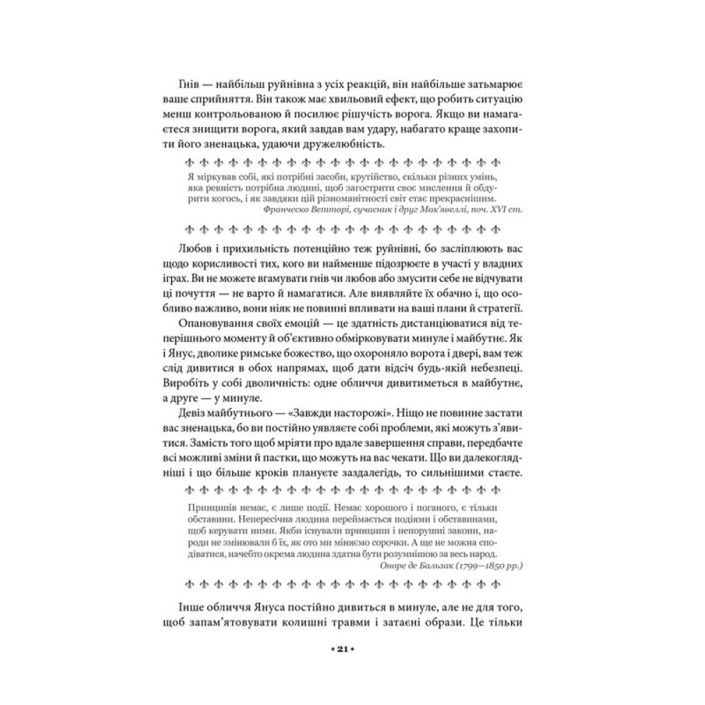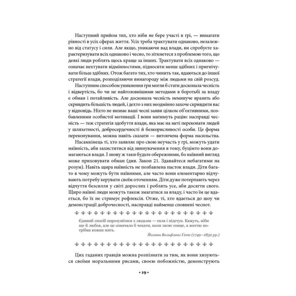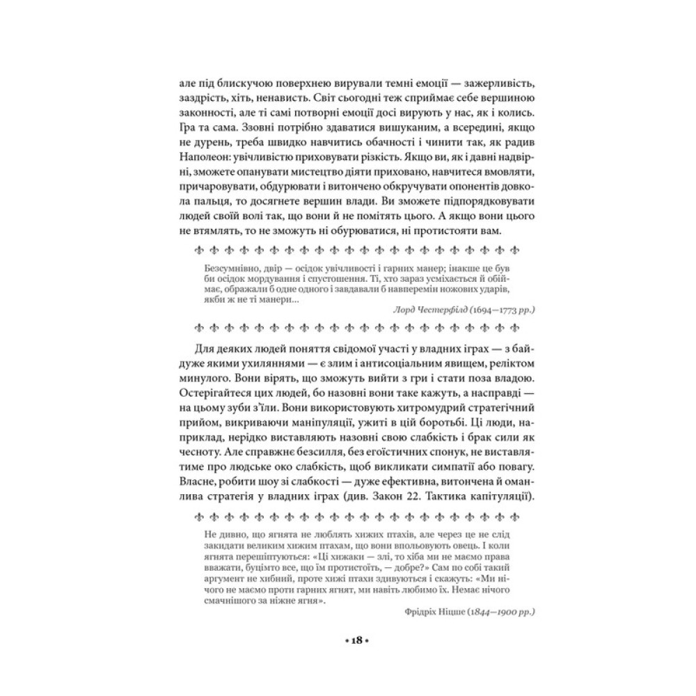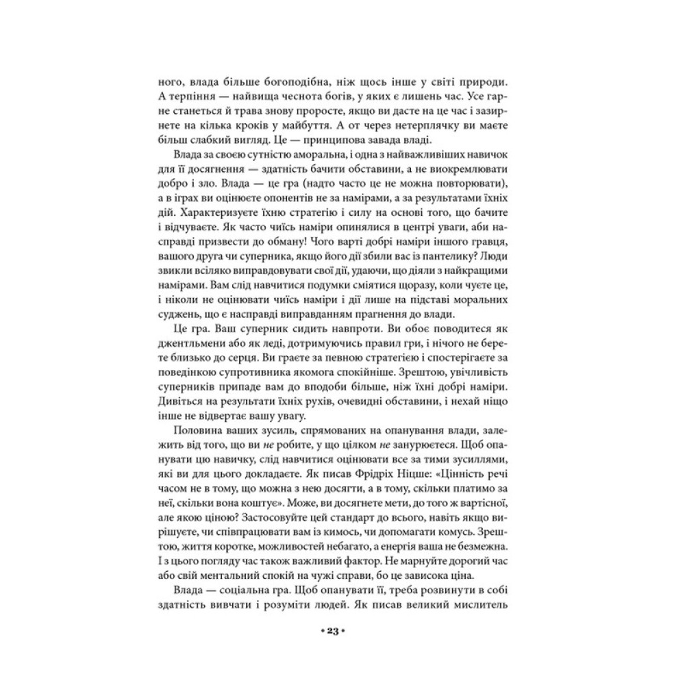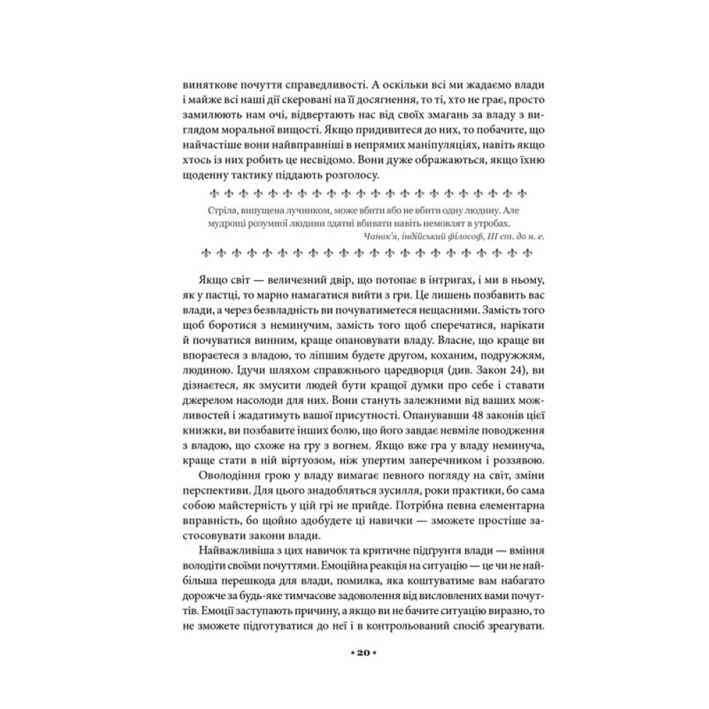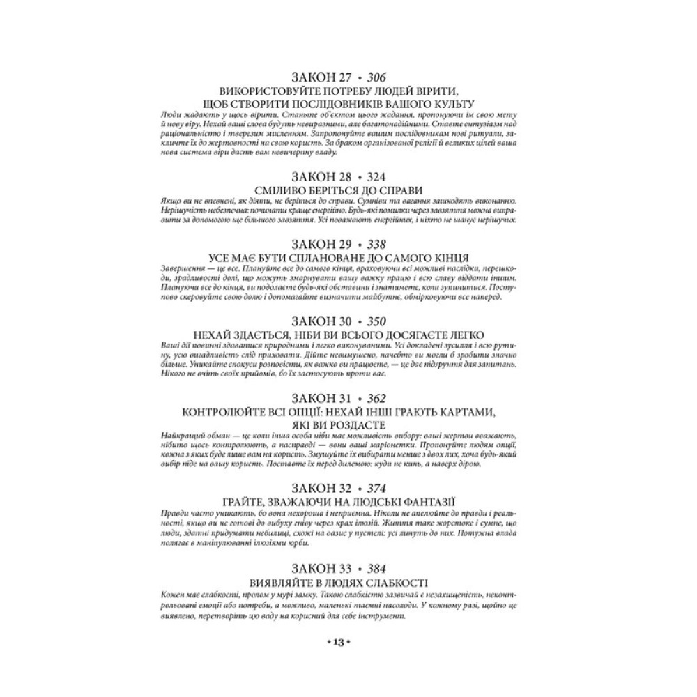 Книжка «48 законів влади» навчить вас розставляти пріоритети, вивчати й розуміти людей, опановувати власні емоції й не говорити більше, ніж потрібно. Практичні поради, що ґрунтуються на 48 законах Гріна, допоможуть усім, хто жадає успіху, прагне впевнено йти до мети й завойовувати світ.