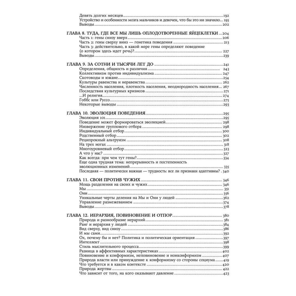 Як працює наш мозок? За що відповідає мигдалина, а за що нам варто дякувати лобовій корі? Що «ненавидить» острівець? Чому в лондонських таксистів збільшений гіпокамп? Як пов'язані довжини вказівного і безіменного пальців і кількість внутрішньоутробного тестостерону? Чим з точки зору нейробіології підлітки відрізняються від дітей і дорослих? Чи бувають «чисті» альтруїсти? У чому різниця між прощенням і примиренням? Чи існує свобода волі? Як складні соціальні зв'язки впливають на нашу поведінку та прийняття рішень?