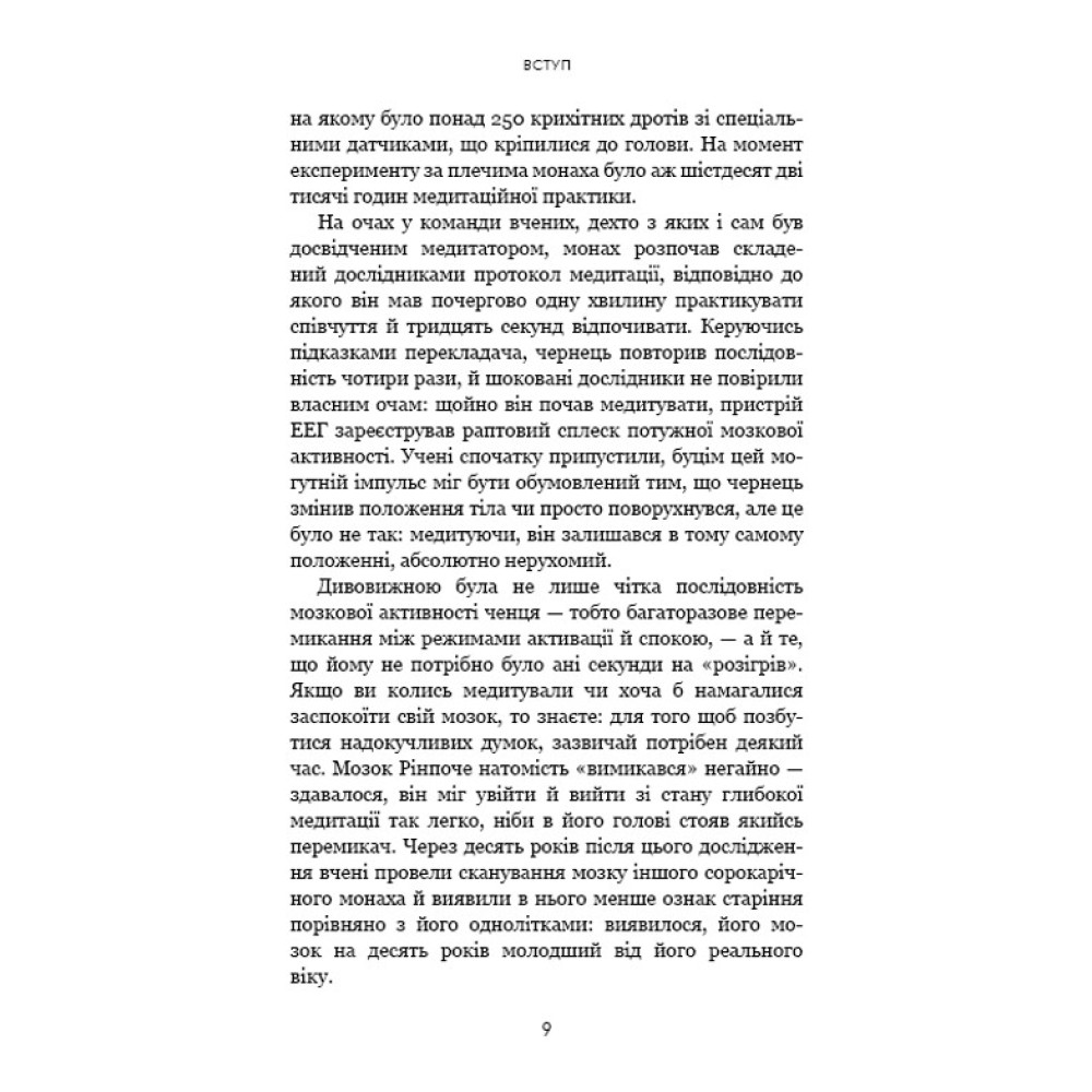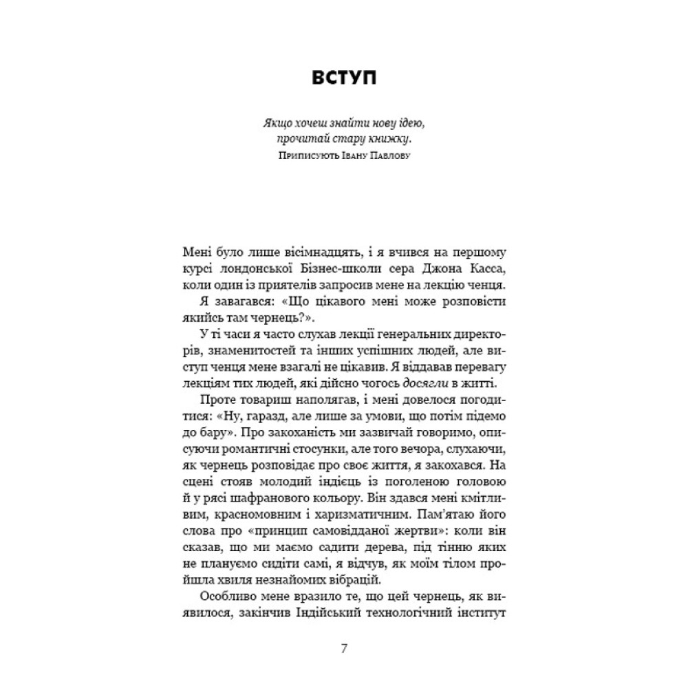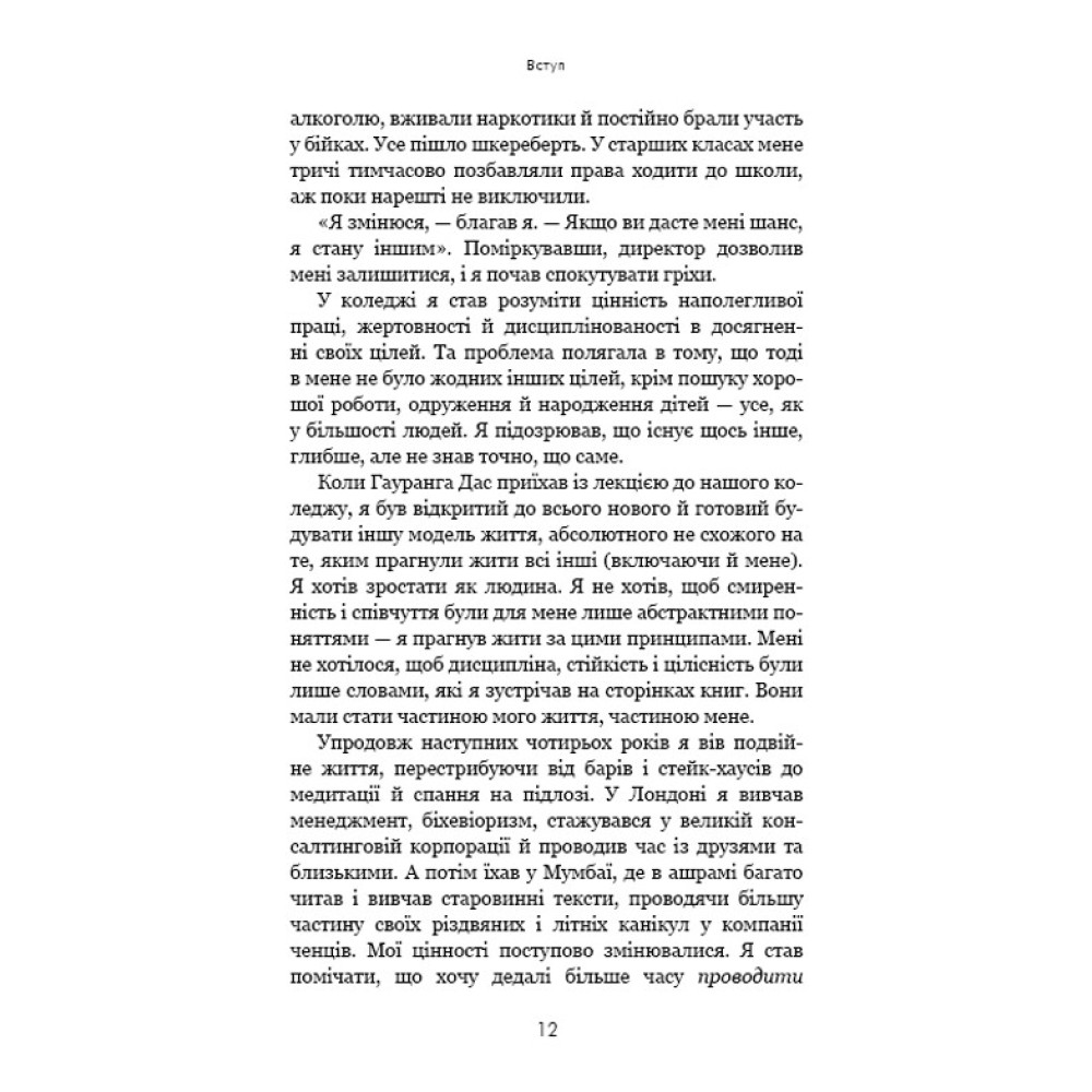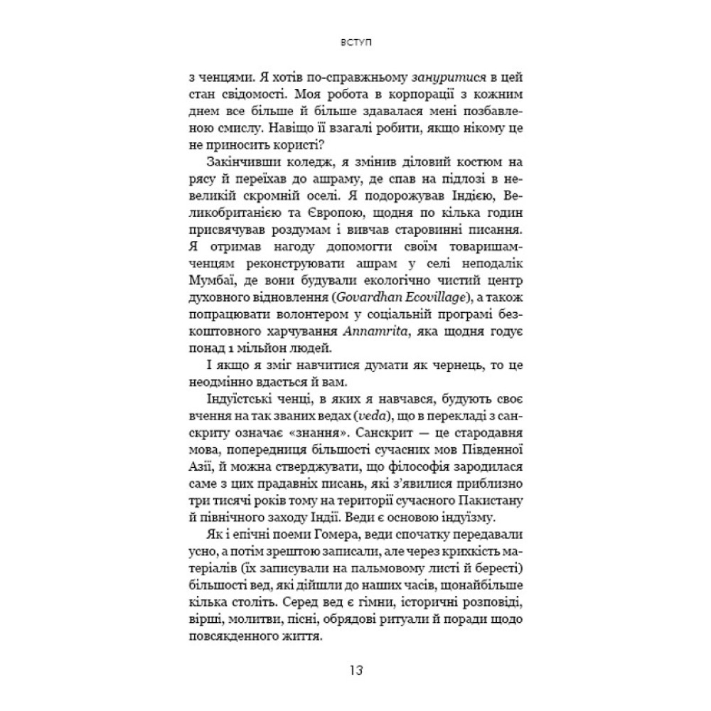 Монахи вміють протистояти спокусам, ніколи не критикують, здатні приборкати біль і тривогу, заспокоювати своє его й будувати життя, сповнене сенсу та наміру. То чому б і нам не повчитися у найспокійніших і найщасливіших людей на землі? Поєднавши давню мудрість і свій досвід перебування в монастирі, Джей Шетті вчить, як подолати негативні думки та звички й досягти спокою і цілей, до яких кожен із нас прагне. Абстрактні уроки Шетті трансформує в конкретні поради й вправи, доступні кожному читачу.
