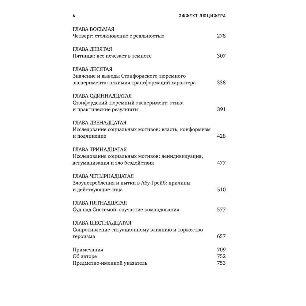 Що спонукає хороших людей творити зло? Спираючись на історичні приклади та власні дослідження, Філіп Зімбардо, автор знаменитого Стенфордського тюремного експерименту показує у книзі «Эффект Люцифера: Почему хорошие люди превращаются в злодеев», як ситуаційні процеси та групові взаємодії людей поєднуються в одну страшну силу, здатну перетворити пристойних чоловіків і жінок на монстрів.