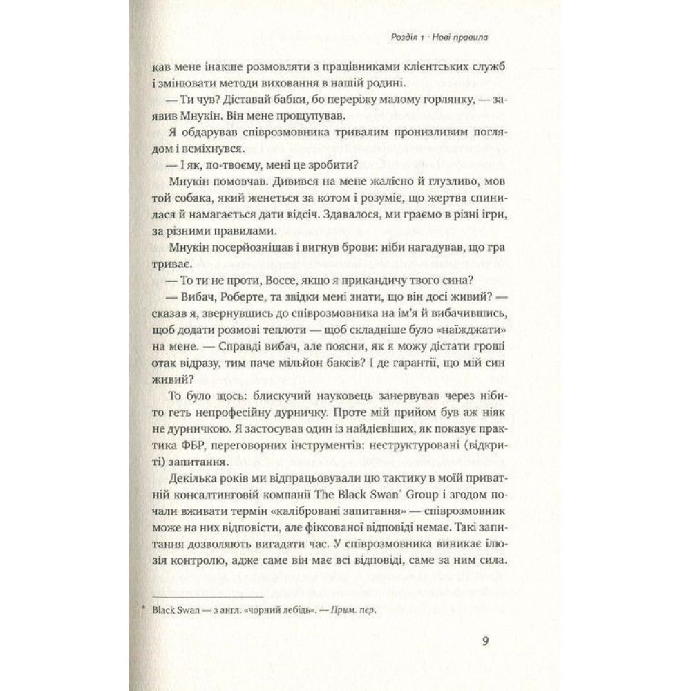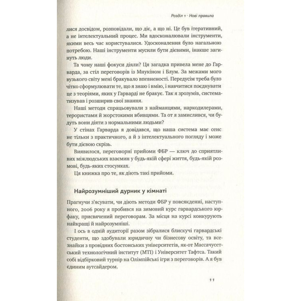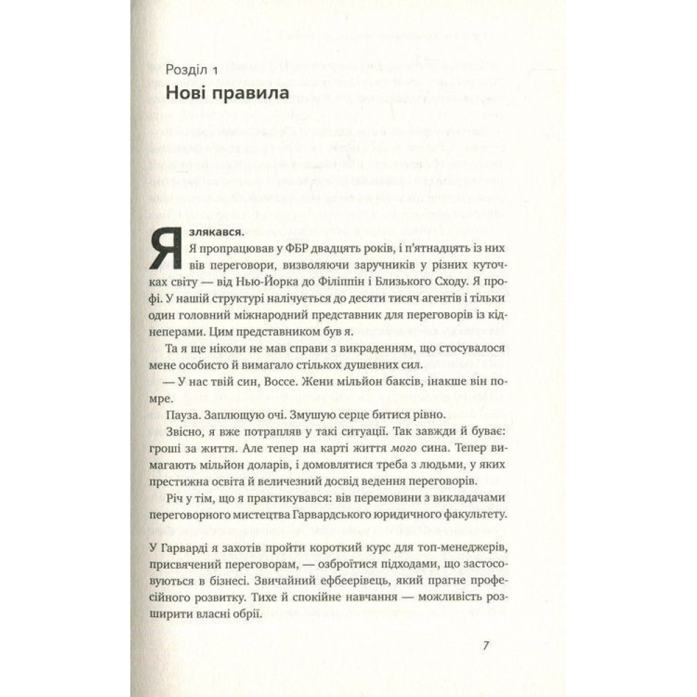 Кріс Восс, автор книги «Ніколи не йдіть на компроміс. Техніка ефективних переговорів» понад 20 років працював переговорником ФБР зі звільнення заручників та вів надскладні перемовини з немислимо високими ставками. Після завершення кар’єри він зрозумів, що прийоми, які напрацювали він і колеги, можуть так само ефективно застосовуватися в будь-якій сфері та будь-яких стосунках.