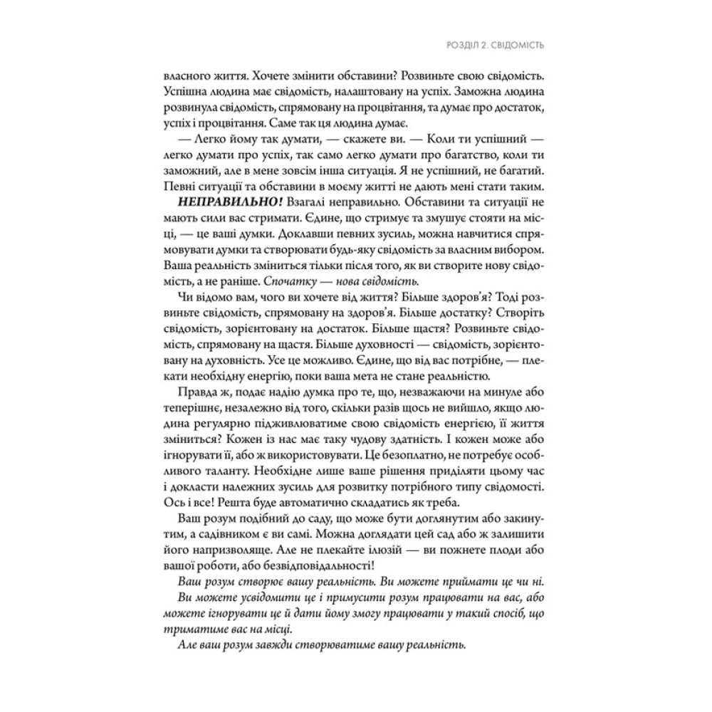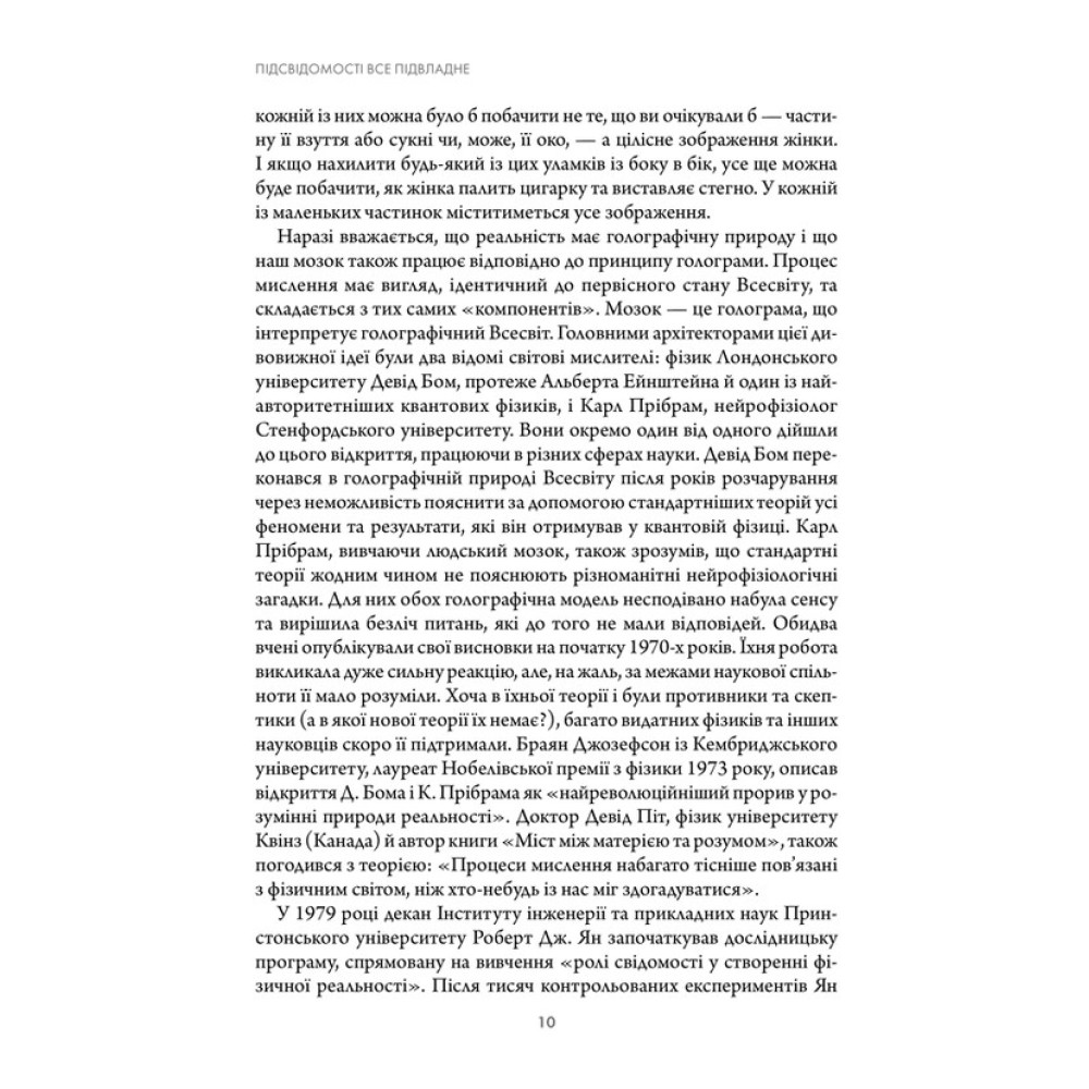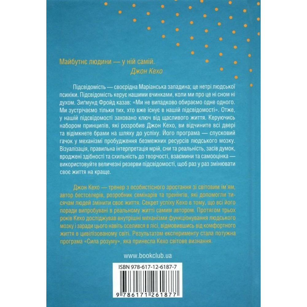 Керуючись набором принципів, які розробив Джон Кехо у книзі «Підсвідомості все підвладне», ви відчините всі двері та відімкнете брами на шляху до успіху. Його програма являє собою спусковий гачок у механізмі пробудження безмежних ресурсів людського мозку. Візуалізація, правильна інтерпретація мрій, сни та реальність, засів думок, вроджені здібності та схильність до творчості, взаємини та самооцінка — використовуйте величезні резерви підсвідомості, щоб раз у раз змінювати своє життя на краще.