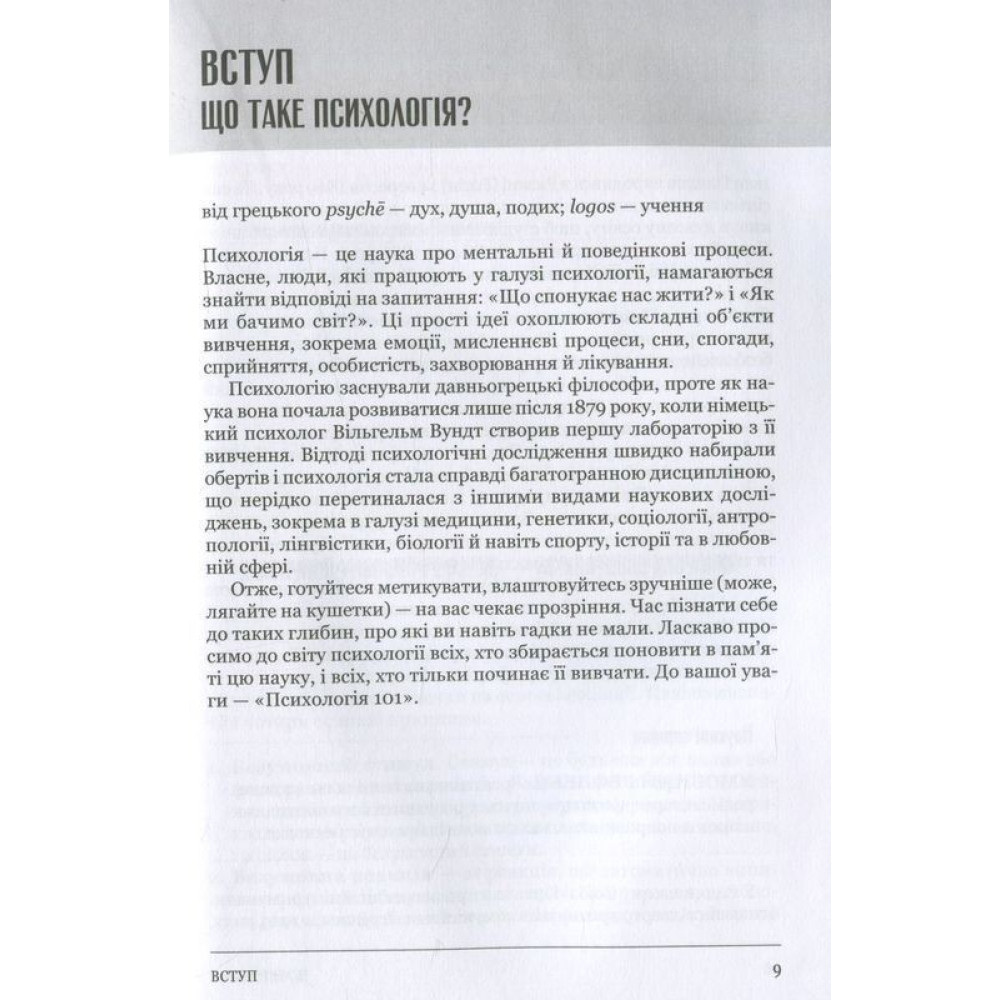 Книга-бестселер «Психологія 101: Факти, теорія, статистика, тести й таке інше» американського журналіста, блогера та письменника Пола Клейнмана подарує неймовірне задоволення й познайомить у науково-популярній формі з основами психологічних концепцій та експериментів і з маловідомими фактами з життя видатних учених-психологів. Долучіться до таємниць пам’яті та несвідомого, інтелекту та емоцій, дізнайтеся про типи та причини психологічних розладів та сучасні методи їхнього лікування й про те, що ж таке когнітивний дисонанс, гештальтпсихологія та теорія особистісних рис.