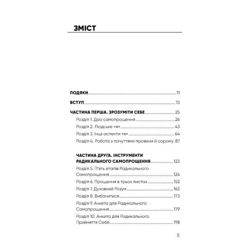 Книга «Радикальне Самопрощення. Прямий шлях до істинного прийняття себе» містить цілий набір інструментів і вправ, прийомів і керованої практики, покликаних допомогти розірвати порочне коло провини та сорому й по-новому сприйняти цей життєвий досвід.