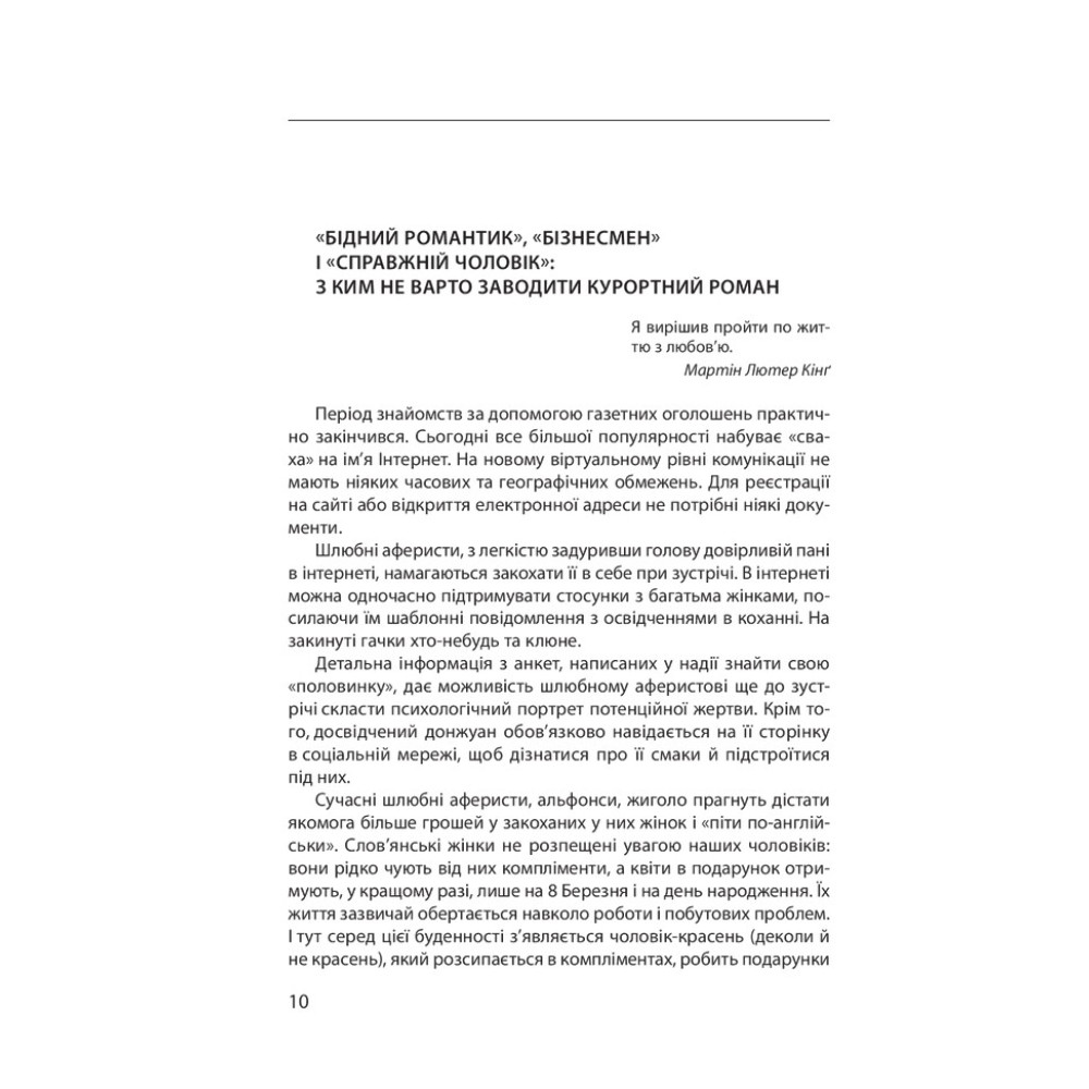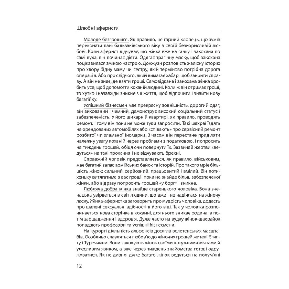 Саме на цих відвертих почуттях грають шлюбні аферисти, несумлінні лікарі й фармацевти, страхувальники автомобілів, нечесні водії та інші злодії на дорогах. Автор також звертається до афер минулого, намагаючись розібратися у психології шахраїв різних часів і народів.