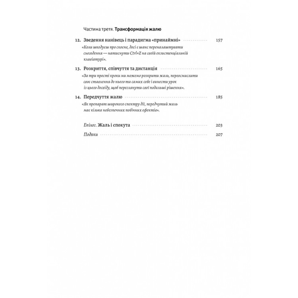 Книжка Деніела Пінка «Сила жалю. Як погляд назад рухає нас вперед», що наповнена справжніми історіями людей і доступно написана, змусить читачів подивитися на жаль як на щось, що не просто додає нам людяності, але й робить кращими. Та найголовніше — показує, як оглядаючись назад, ми можемо рухатися вперед.
