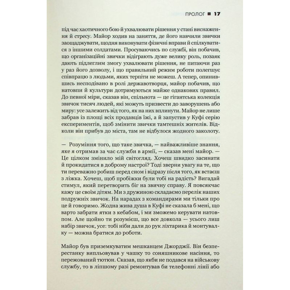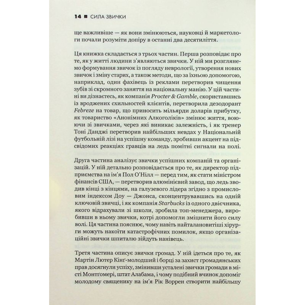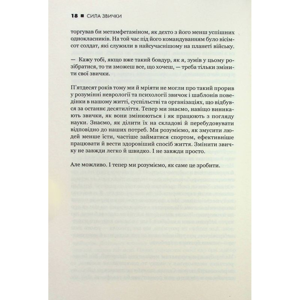 Книга «Сила звички. Чому ми діємо так, а не інакше в житті та бізнесі» від Чарлза Дахіґґа розкриває механізм формування звичок у мозку, пояснює, як вони керують нашою поведінкою — і як ми можемо свідомо змінювати їх, аби впливати на своє життя, роботу, компанії та суспільство. Книга не просто теоретична — в ній багато конкретних прикладів, експериментів, історій з життя компаній, спортсменів, пацієнтів.
