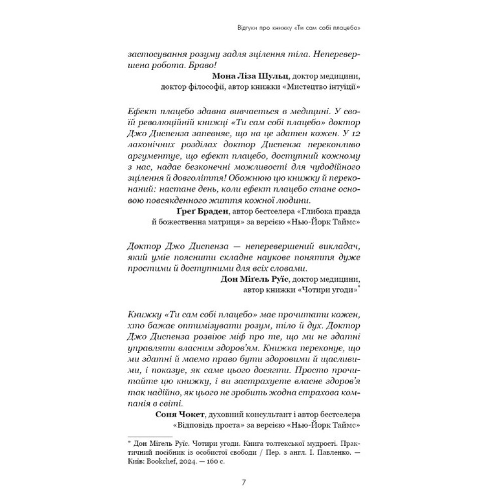 | Назва | Ти сам собі плацебо. Перетвори свій розум на ліки. Дж. Диспенза |