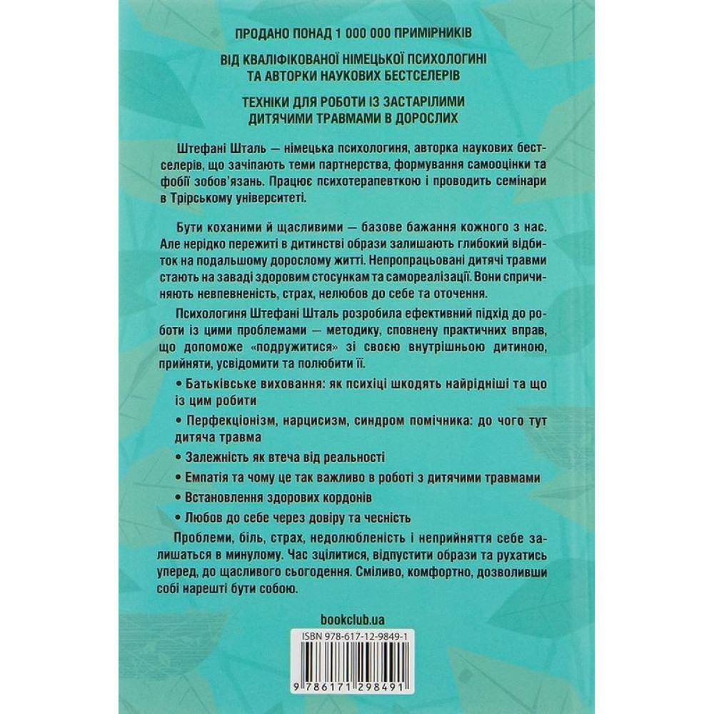 Психологиня Штефані Шталь розробила та представила у книзі «Твоїй внутрішній дитині потрібен дім. Як пропрацювати дитячі травми та позбутися страхів минулого» ефективний підхід до роботи із цими проблемами — методику, сповнену практичних вправ, що допоможе «подружитися» зі своєю внутрішньою дитиною, прийняти, усвідомити та полюбити її.
