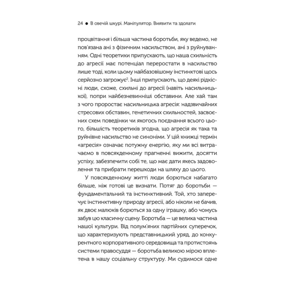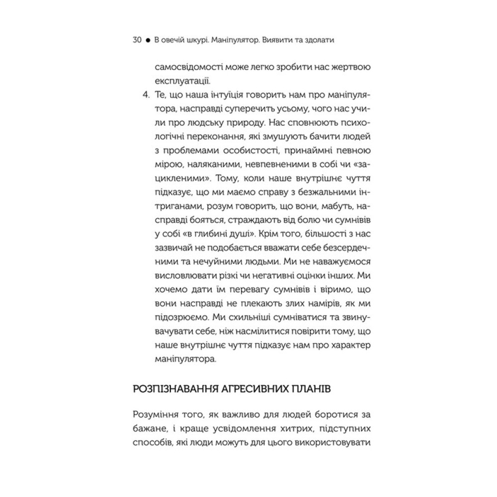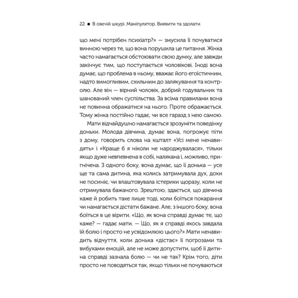 Американський доктор психології Джордж Саймон вчить розпізнавати дії маніпуляторів, розуміти та вгамовувати їх у книзі «В овечій шкурі. Маніпулятор. Виявити та здолати». Він має великий досвід роботи з парами та родинами як психотерапевт, консультує компанії та державні структури. Ця книжка містить безліч прикладів маніпулювання в різних сферах життя, детальний розбір усіх можливих ситуацій і варіацій їхнього вирішення, поради щодо розпізнавання цього неприємного явища і зведення його нанівець.