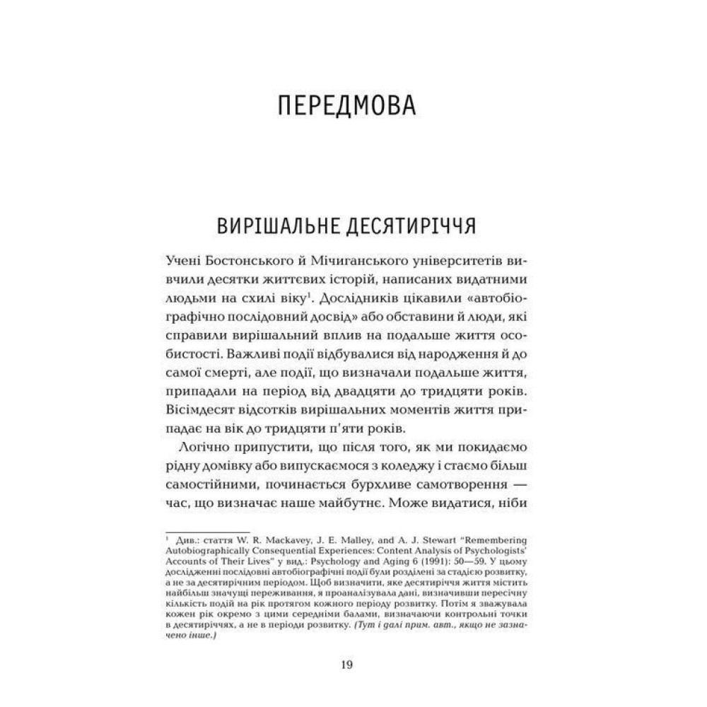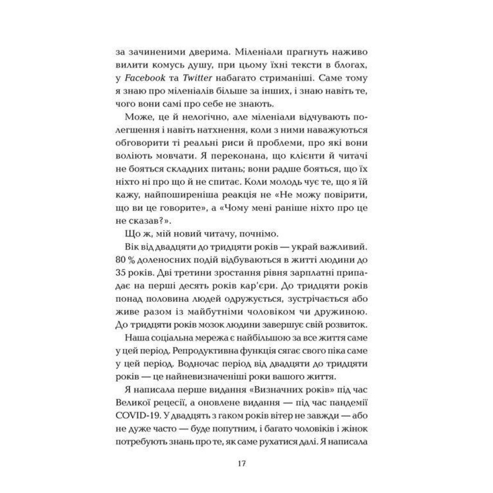 Дві третини зростання рівня зарплатні припадає на перші десять років кар’єри. До тридцяти років понад половина людей одружуються, зустрічаються або живуть разом із майбутніми чоловіками чи дружинами. Характер найістотніше змінюється в період від двадцяти до тридцяти років — не до і не після. До тридцяти років мозок людини завершує свій розвиток.
