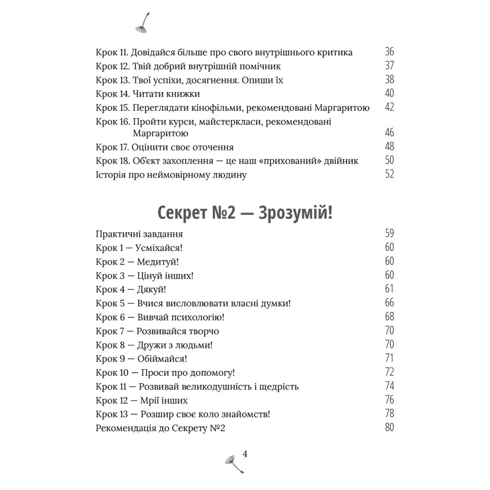Книга «5 секретів щасливого життя» Маргарити Січкар — це відповідь на запит мільйонів людей по всьому світові. Авторка пропонує чіткі, зрозумілі і прості правила, виконуючи які крок за кроком, ви стаєте іншою людиною, ніби потрапляєте в нову реальність. Щастя стане частиною вас, а потім ви самі перетворитесь на ходяче щастя. Якщо ви давно не відчували радість життя, не пам'ятаєте коли востаннє безпричинно сміялися, а ваше повсякдення схоже на бурю посеред пустелі, то цей щоденник — саме для вас.