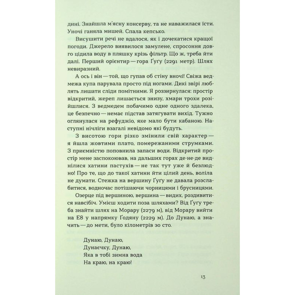 Авторка у своїй книзі «Сама. 2300 кілометрів через усі Карпати» детально описує планування маршруту, необхідне спорядження та розрахунок запасів їжі на довгі дистанції. Олена щиро розповідає про людей, яких зустрічала, і про те, як цей похід став для неї шляхом до глибшого розуміння себе самої.