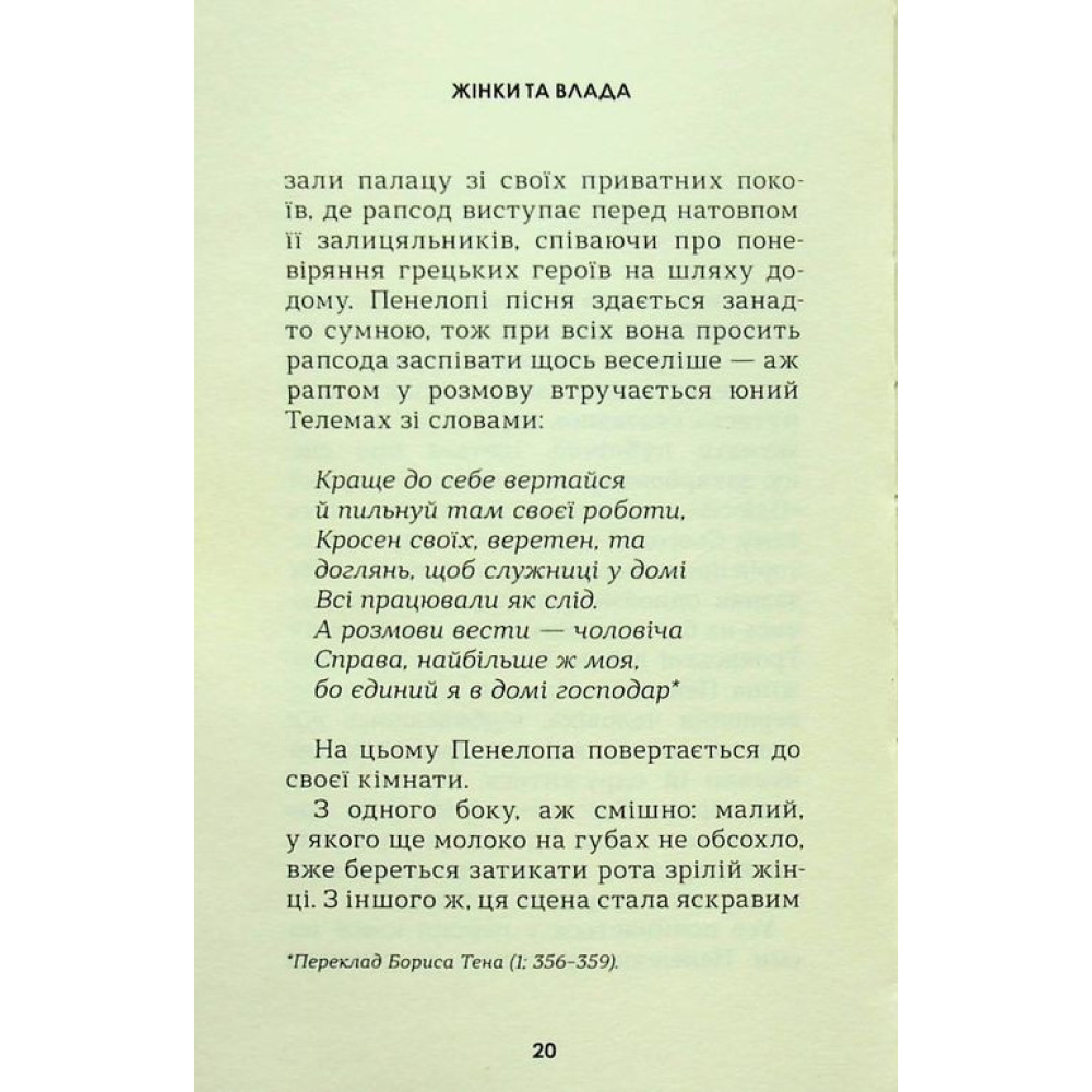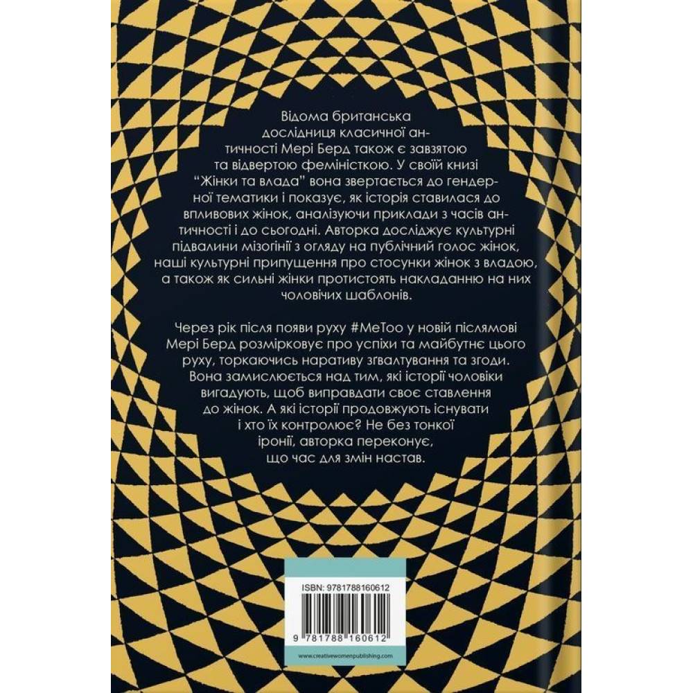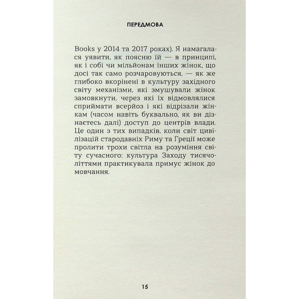 Книжка «Жінки та влада: маніфест» являє собою сміливий маніфест, в якому Мері Берд звертається до мізогінів і тролів, котрі безжально атакують і принижують жінок по всьому світу (дуже часто, зокрема, з цим стикається й сама авторка). У своїй книзі вона відстежує походження цієї мізогінії з її прадавніх коренів, досліджуючи підводні камені гендерних стереотипів та зневагу, якої зазнавали сильні жінки ще з незапам’ятних часів.