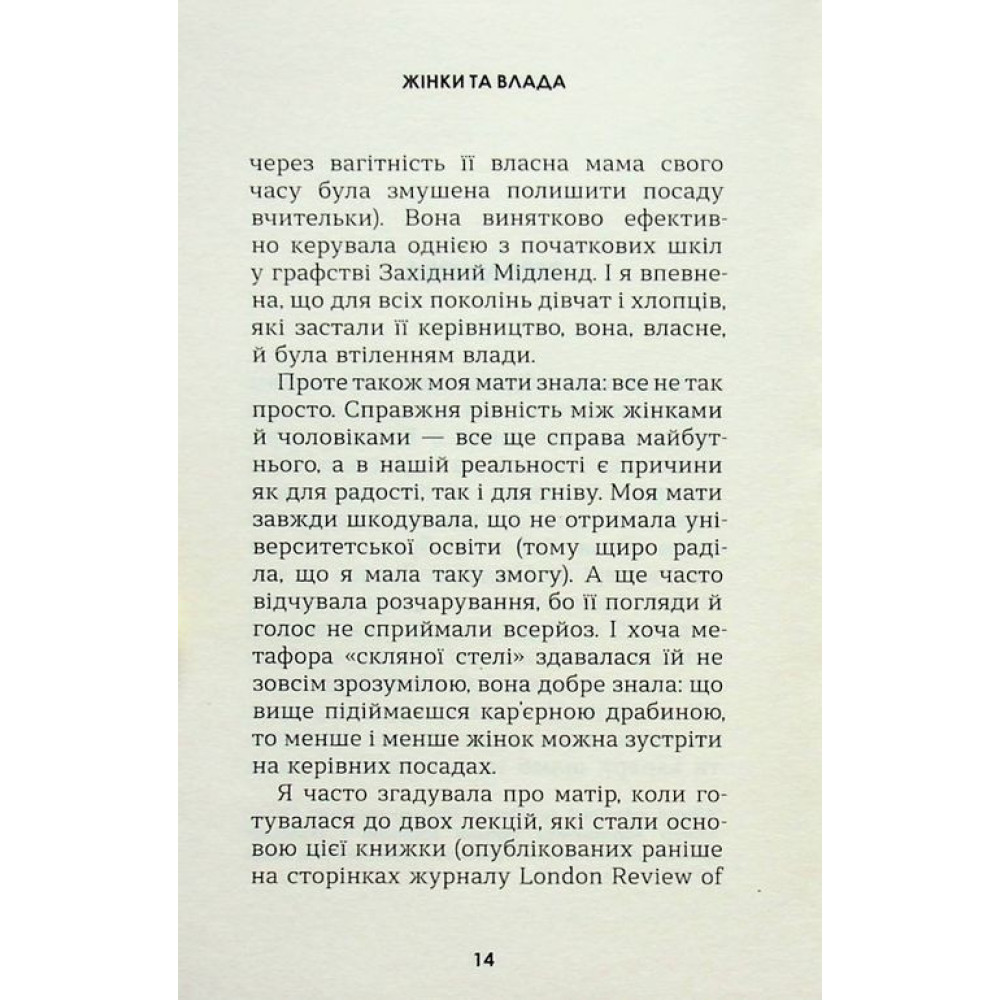 Книга висвітлює необхідність змін у системі, яка дискримінує жінок і заважає їм досягати влади і впливу.