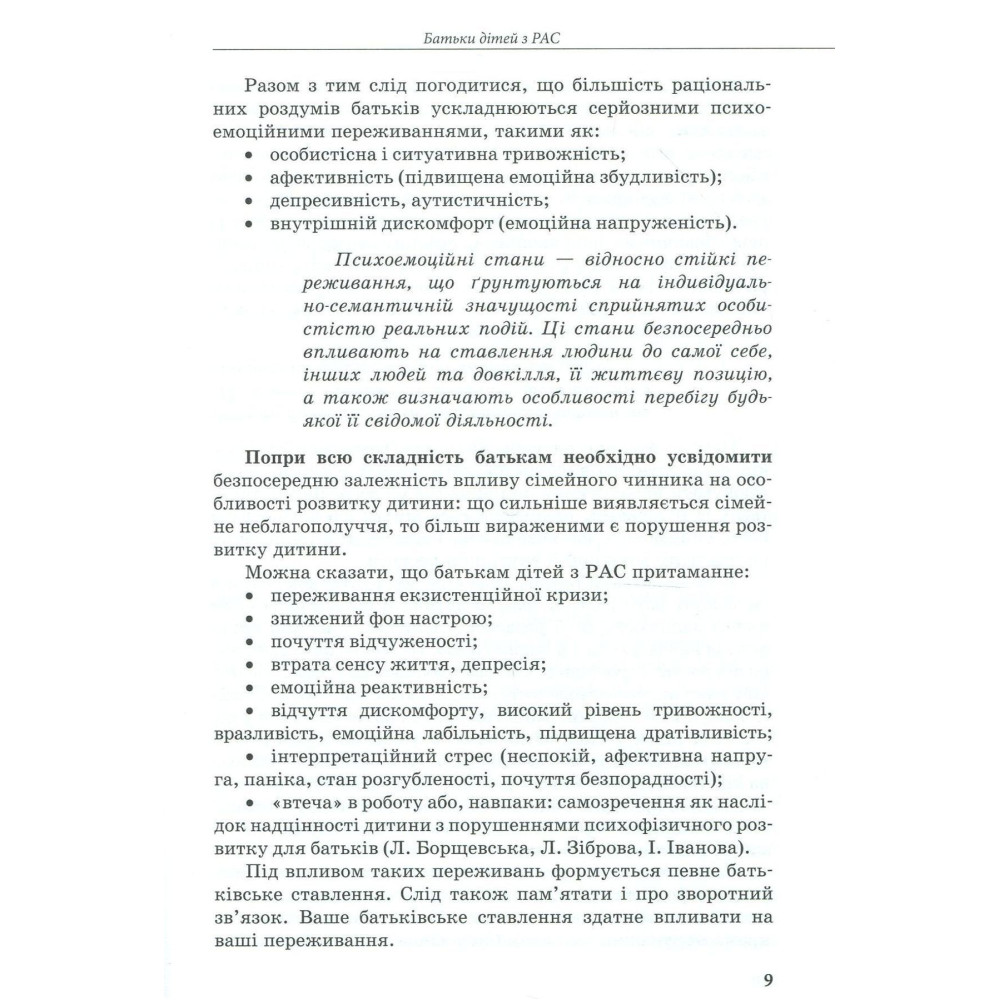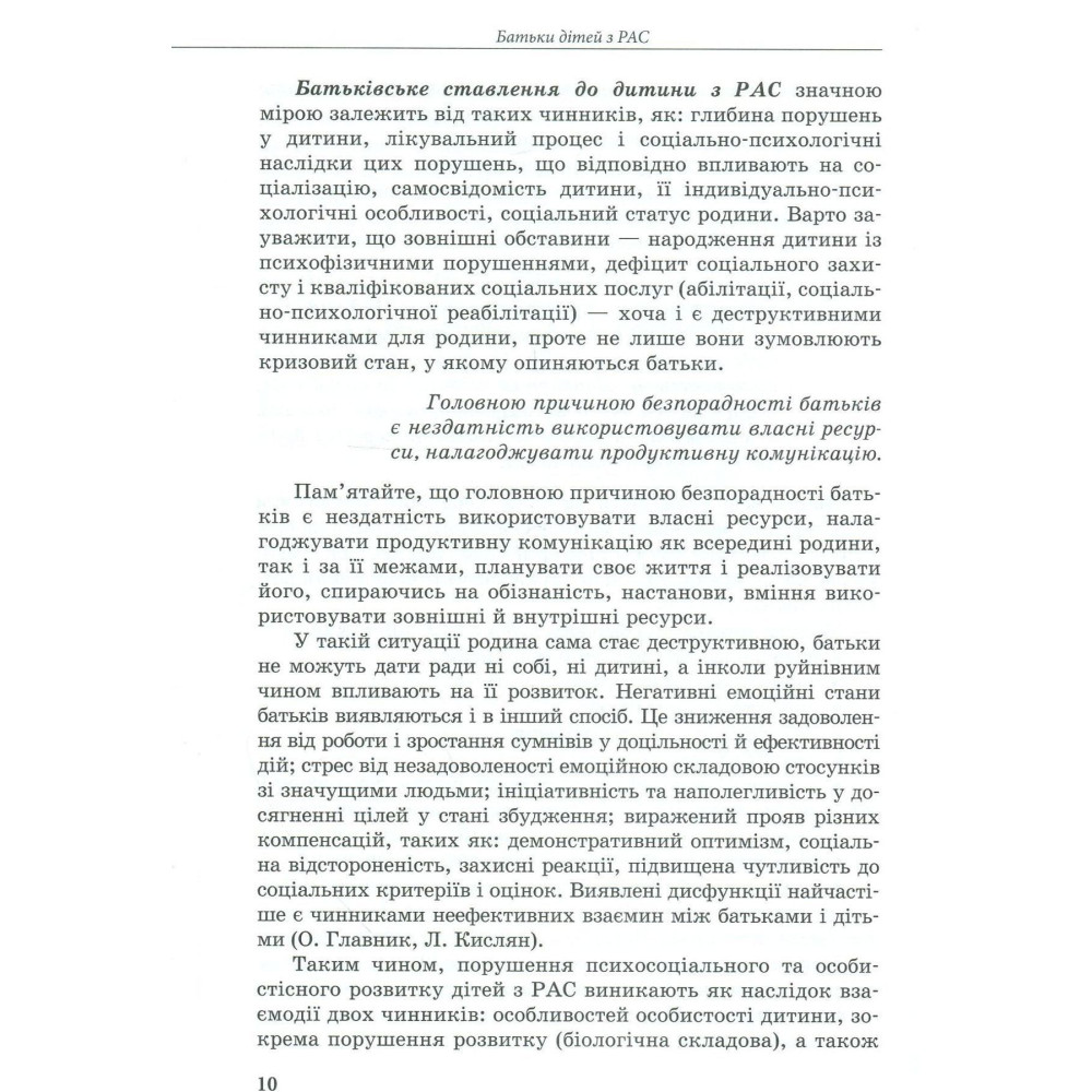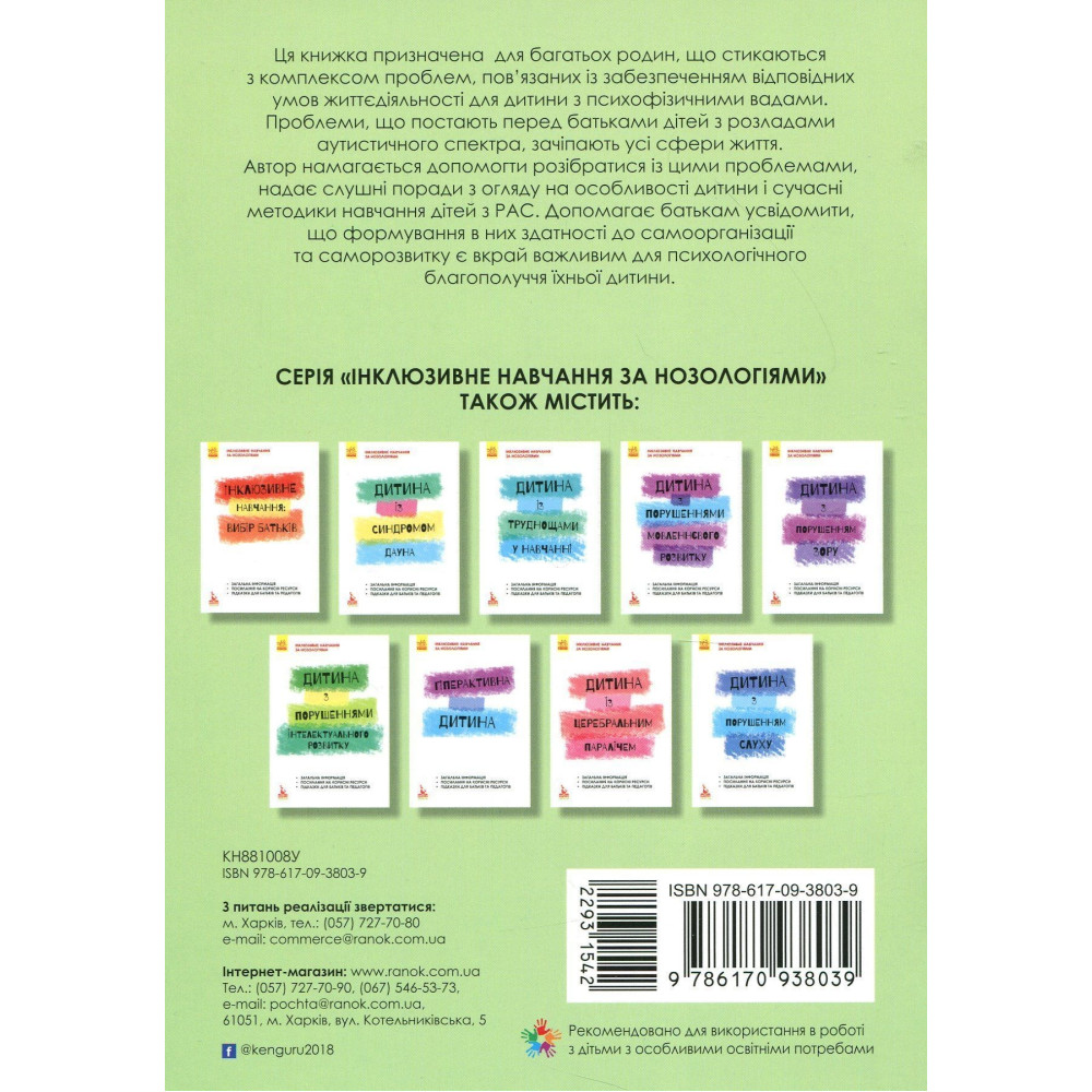 У посібнику «Інклюзивне навчання за нозологіями. Дитина з розладами аутистичного спектра» автор намагається допомогти розібратися із цими проблемами, надає слушні поради з огляду на особливості дитини і сучасні методики навчання дітей з РАС. Допомагає батькам усвідомити, що формування в них здатності до самоорганізації та саморозвитку є вкрай важливим для психологічного благополуччя їхньої дитини.