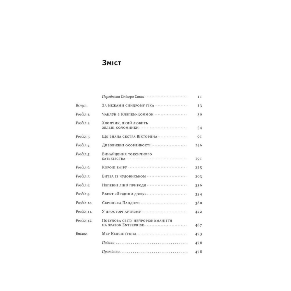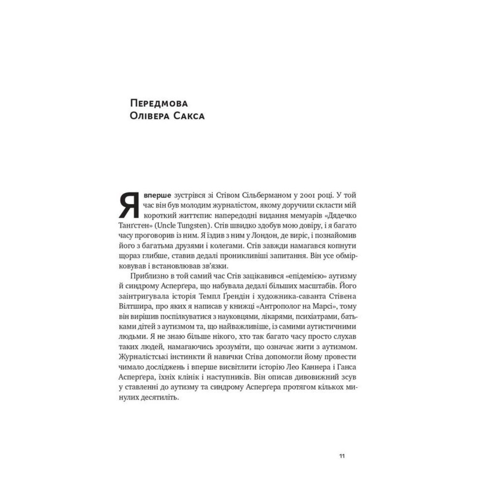 Сорок років тому вчені та лікарі фіксували лише 4-5 випадків аутистичного розладу на 10 тисяч дітей. Відтоді показники стрімко зросли, і вже в 2018 році цей стан діагностували в кожної 59-ої дитини. Але що таке аутизм? Люди з цим розладом приречені на самотність, чи це генії з унікальним складом розуму? І що відбувається в їхньому мозку? На все є відповіді у самій книзі.