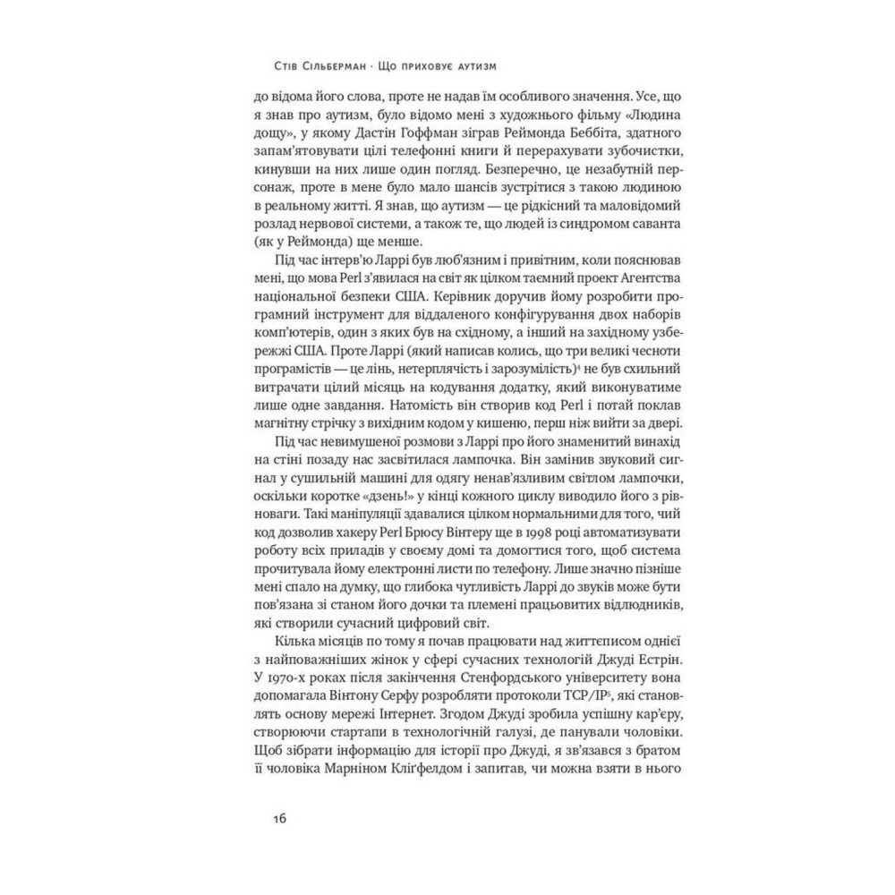 У книжці «Що приховує аутизм. Майбутнє нейрорізноманіття» науковий журналіст Стів Сільберман розповідає історію аутизму, дивовижні факти з життя «людей дощу» та їхні фантастичні досягнення.