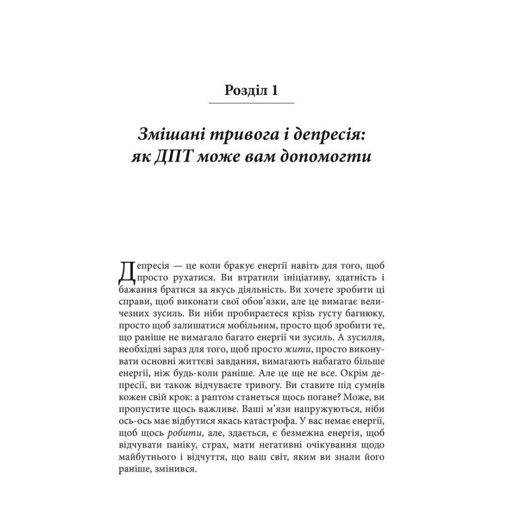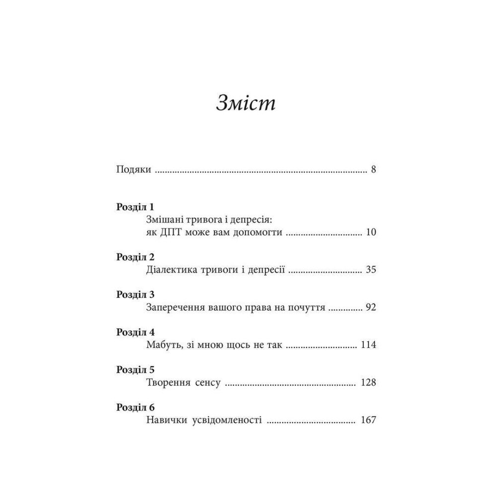 Техніки і стратегії, представлені в цій книзі, треба використовувати систематично. І сприймати цю книгу як посібник з емоцій, який допоможе послабити змішані тривогу і депресію.