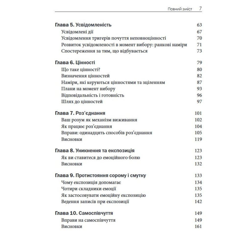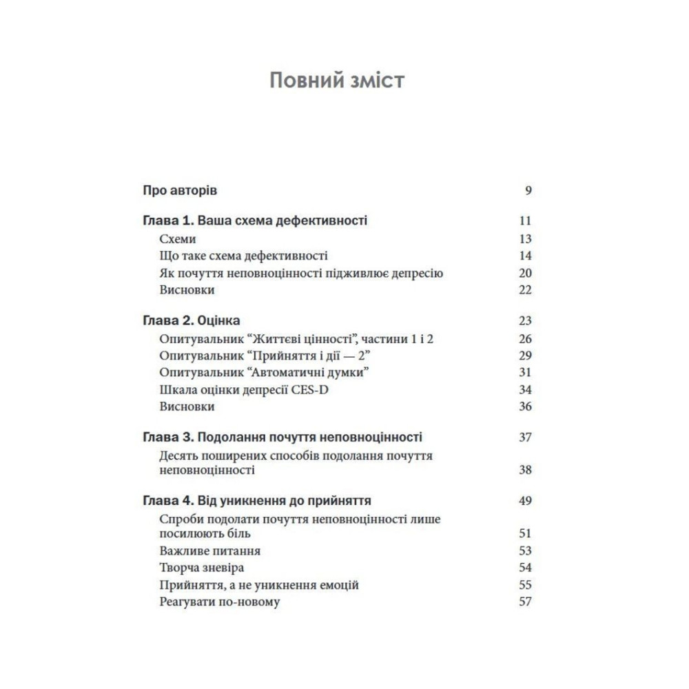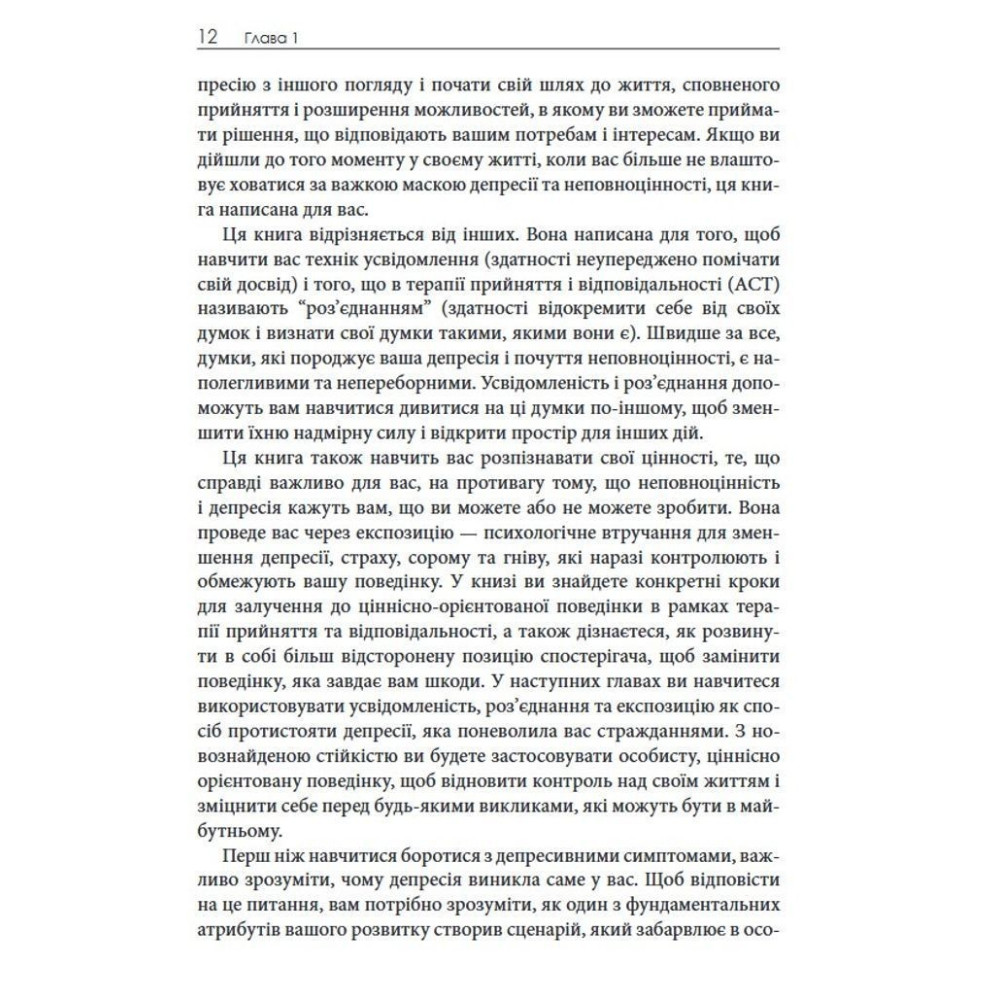 Використовуючи методи терапії прийняття та відповідальності (ACT), автори книги «Терапія прийняття та відповідальності для депресії й сорому. Як здолати думки про неповноцінність та покращити самопочуття» Метью Маккей, Майкл Джейсон Грінберг та Патрік Феннінг допоможуть ідентифікувати та подолати почуття неповноцінності й знову наповнити життя енергією та сенсом. Ви зрозумієте власні цінності, знайдете кращі стратегії подолання труднощів та навчитеся ставитися до себе з добротою та любов'ю. Якщо ви готові зцілитися та подарувати собі турботу й співчуття, на які заслуговуєте, — книга допоможе зробити це.