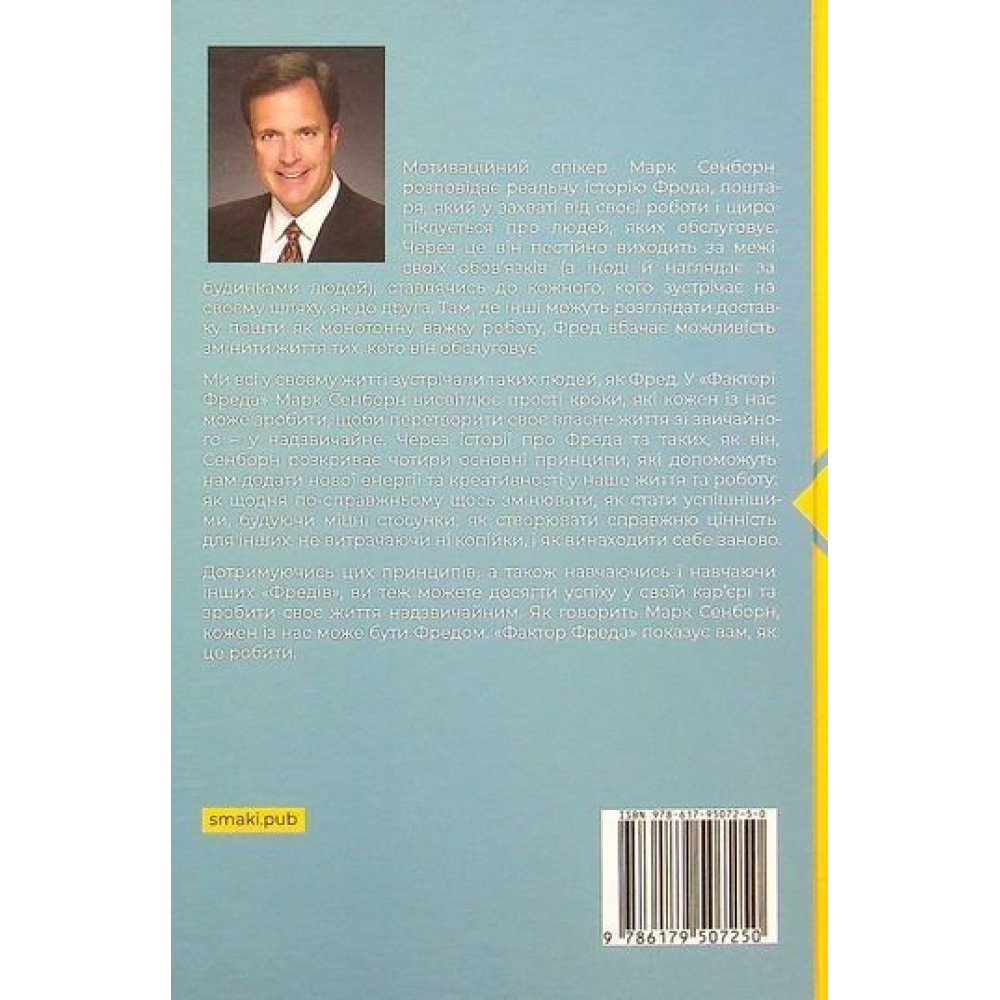 У книзі «Фактор Фреда: Як заповзятість у роботі та житті звичайне робить надзвичайним» Марк Сенборн висвітлює прості кроки, які кожен із нас може зробити, щоби перетворити своє власне життя зі звичайного у надзвичайне. Через історії про Фреда і таких, як він, автор розкриває чотири основні принципи, які допоможуть нам додати нової енергії та креативності у наше життя та роботу: як щодня по-справжньому щось змінювати, як стати успішнішими, будуючи міцні стосунки, як створювати справжню цінність для інших, не витрачаючи ні копійки, і як переосмислювати себе.