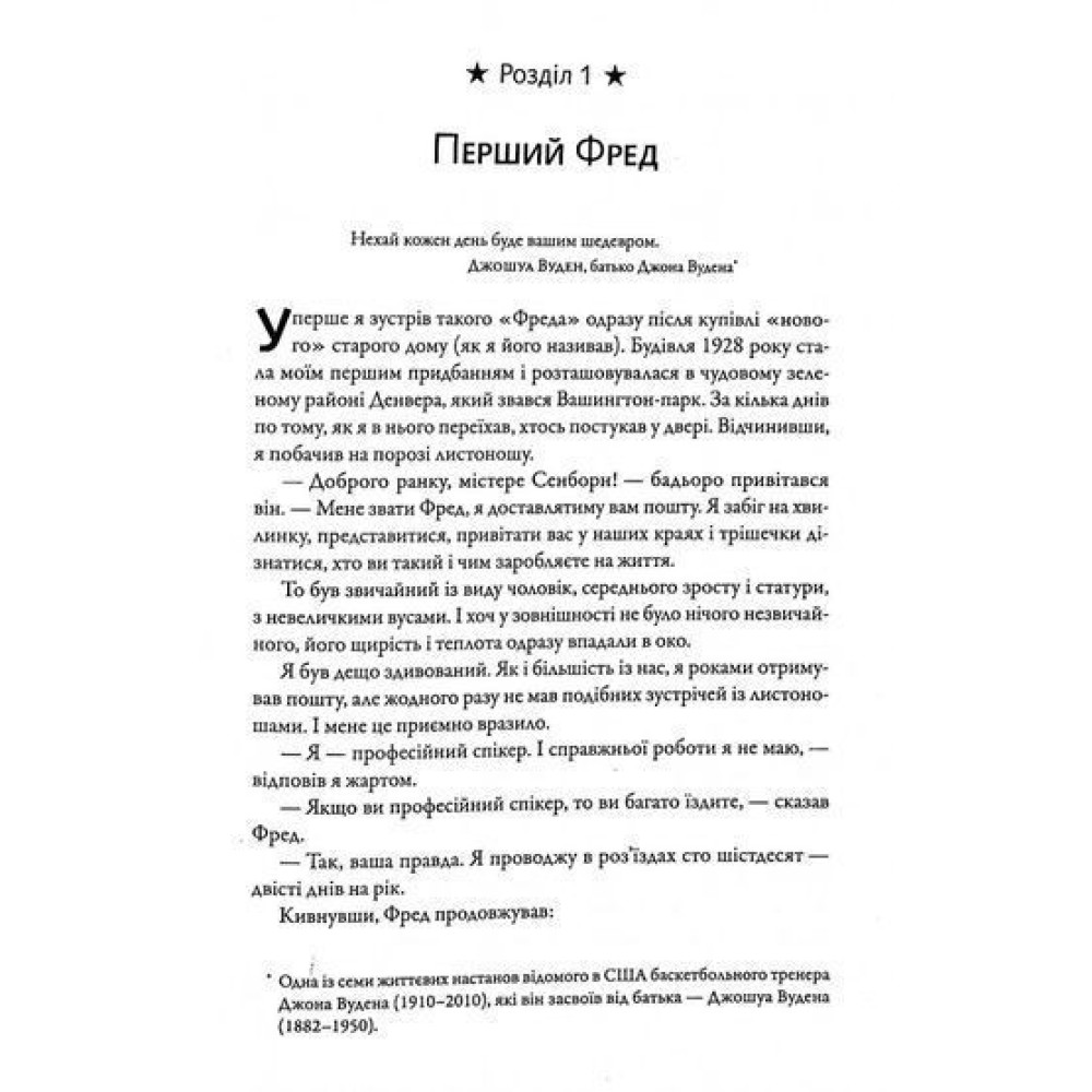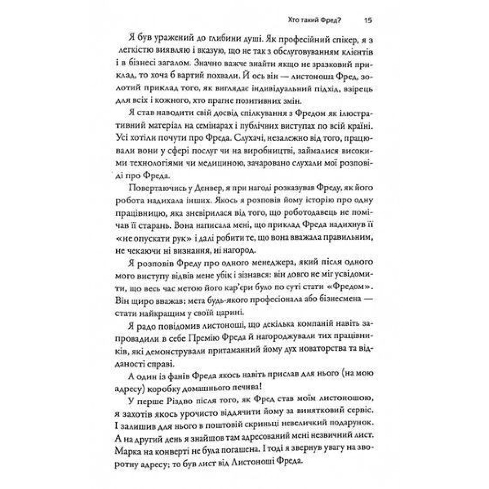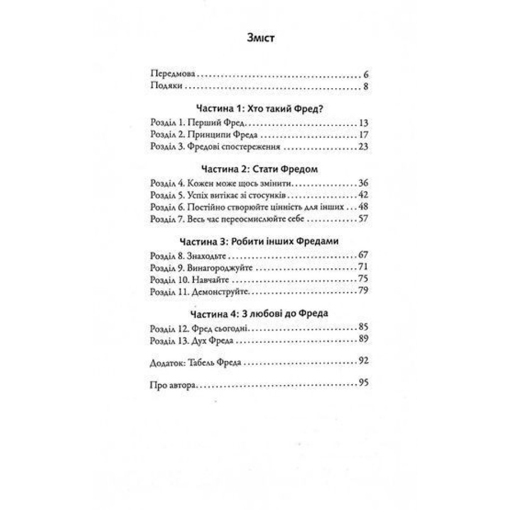 Дотримуючись цих принципів, а також навчаючись і навчаючи інших «Фредів», ви теж можете досягти успіху у своїй кар’єрі та зробити своє життя надзвичайним. Як говорить Марк Сенборн, кожен із нас може бути Фредом. Книга ж показує нам, як це робити.