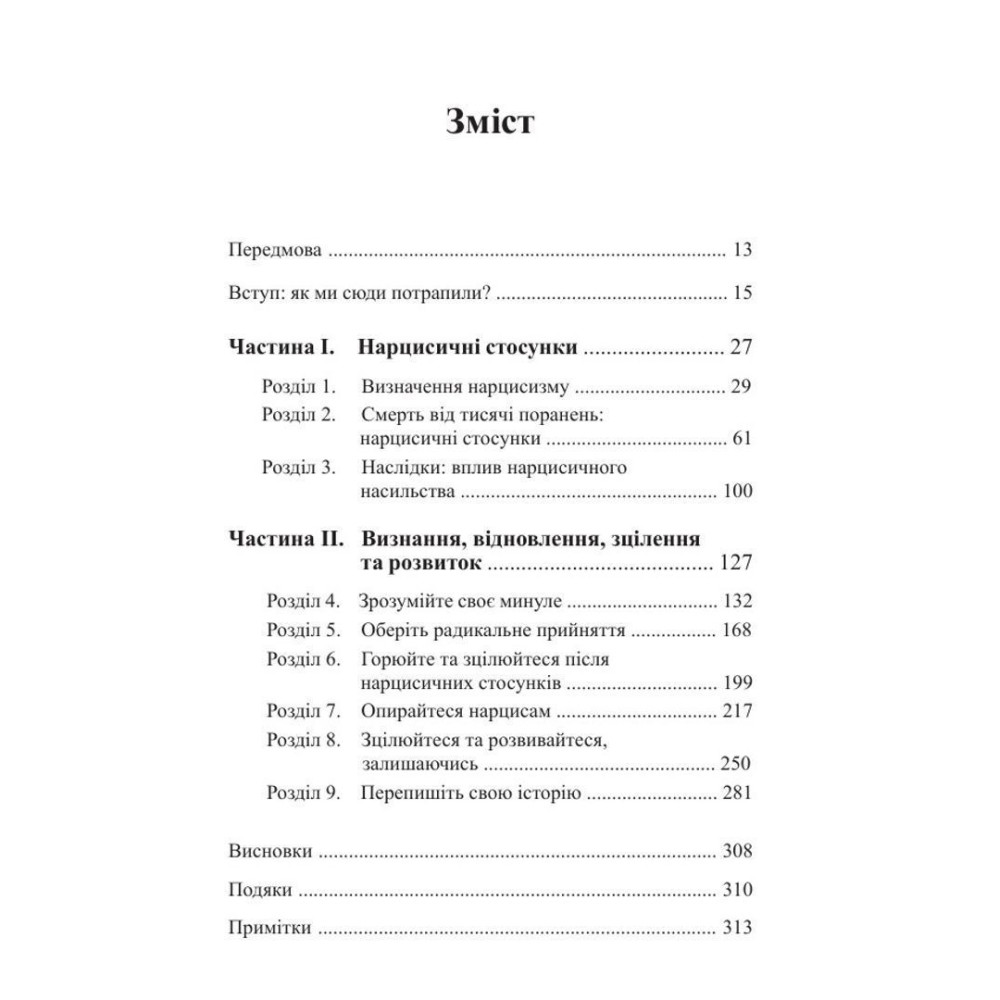 Авторка пояснює, як розпізнати нарцисичні риси, зрозуміти механізми маніпуляцій і відновити почуття власної гідності після емоційного виснаження. Книга поєднує наукові знання, клінічний досвід і практичні стратегії, які допомагають зцілитися, встановити здорові межі та повернути собі силу.