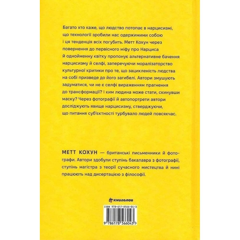 «Нарцис у розквіті: Альтернативна історія селфі» — це інтелектуальна подорож у світ автопортрету, написана філософом і критиком культури Меттом Кохуном. Автор пропонує несподіваний, глибокий погляд на селфі як культурний і філософський феномен, що має коріння далеко за межами сучасної цифрової епохи.