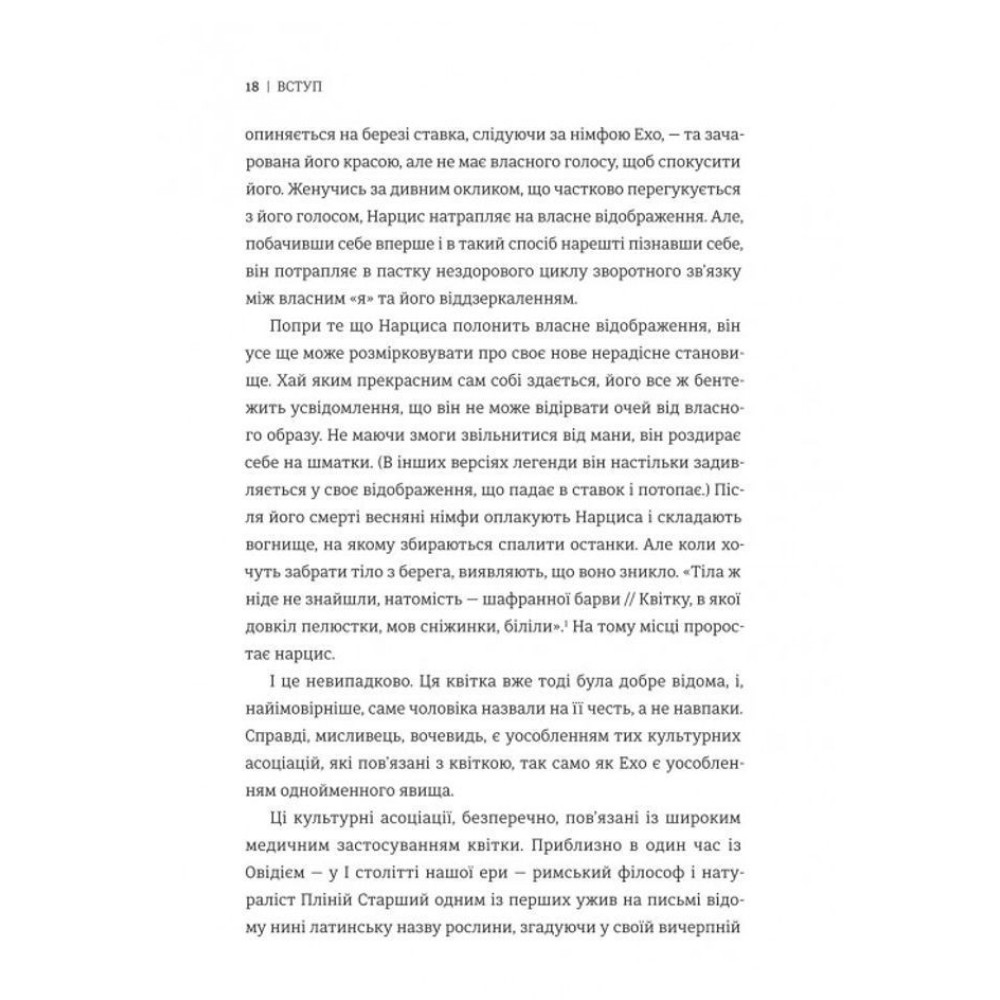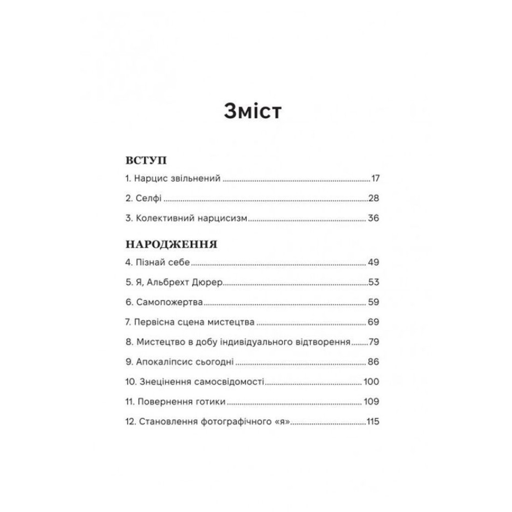 Через поєднання мистецтвознавства, філософії, медіатеорії та культурної критики, «Нарцис у розквіті» пропонує альтернативну історію суб’єктивності — історію, де селфі стає не симптомом самозакоханості, а актом самопізнання у візуальну добу.