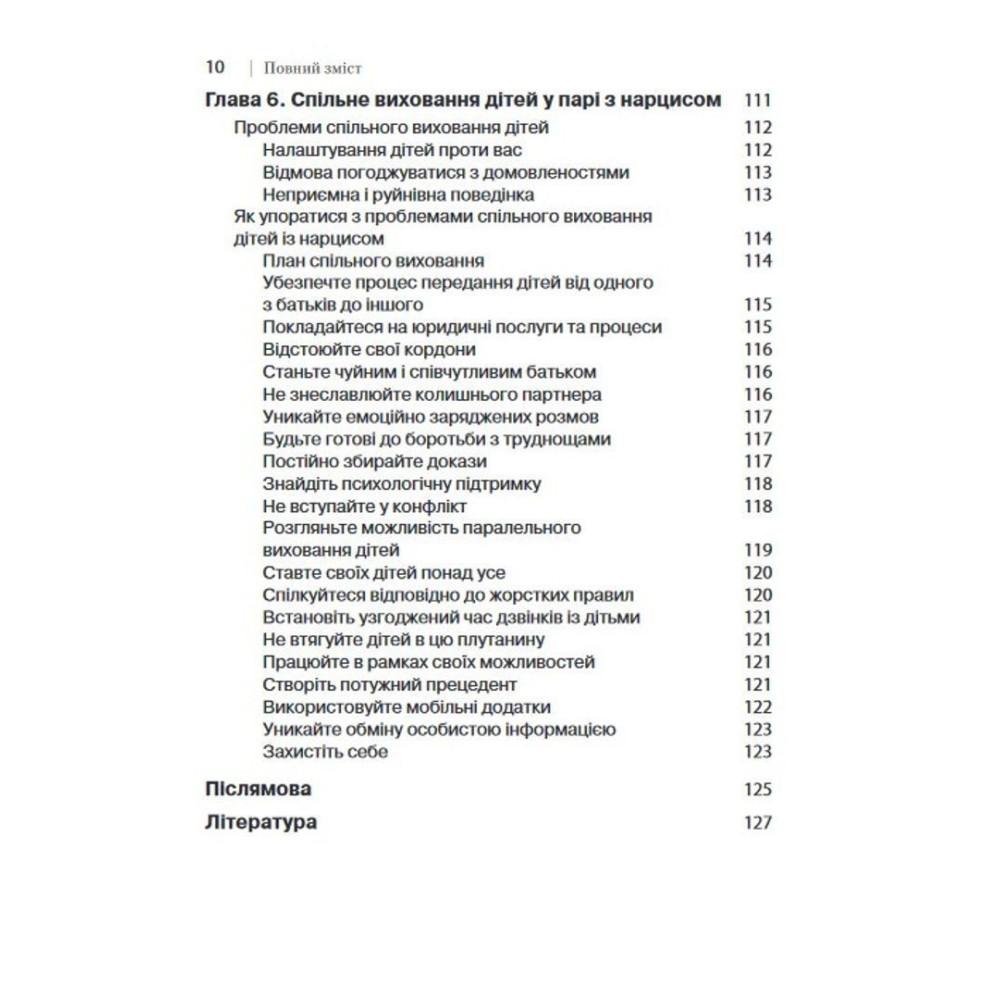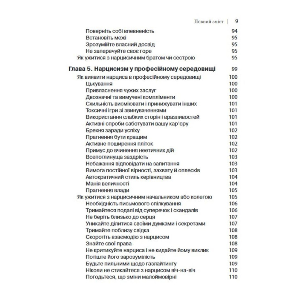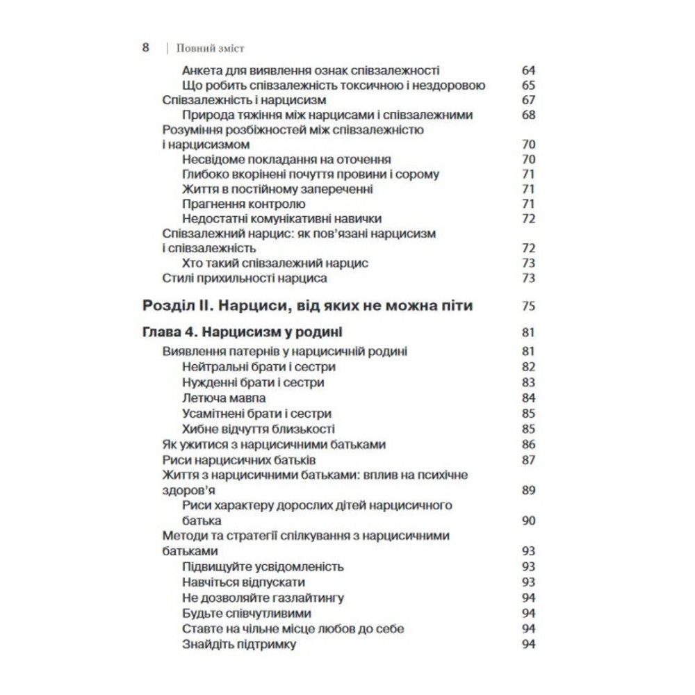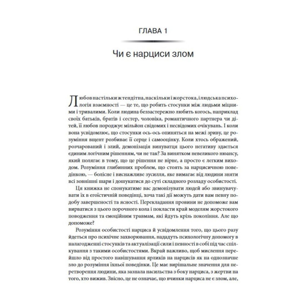 Іноді піти від нарциса — зовсім не вихід. Не тому, що це неможливо, а тому, що ви цього не хочете. У книжці пояснюється, як впоратися із присутністю нарциса у вашому житті й захистити себе від його впливу, при цьому не розриваючи зв'язок і не йдучи назавжди.